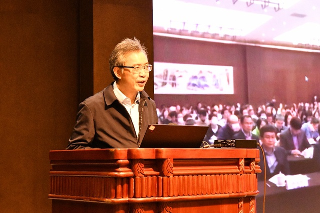 Hou Zengqian, a CAS academician, gives a keynote speech
