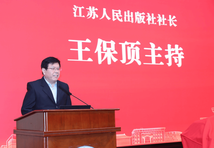 Zhang Aijun, Tan Tieniu, Hong Yinxing, and Sun Zhenfu, Secretary of the CPC Jiangsu Phoenix Publishing & Media Group Committee jointly launched The Chinese Path to Modernization. Xu Hai, Deputy General Manager and Editor-in-Chief of Jiangsu Phoenix Publishing & Media Group, introduced the planning and publishing process of this book. Lin Haitao, Deputy General Manager of Phoenix, presented a copy of the book to Huang Xianjin, Director of Nanjing University Library, as a gift. The ceremony was hosted by Wang Baoding, President of Jiangsu People's Publishing House.