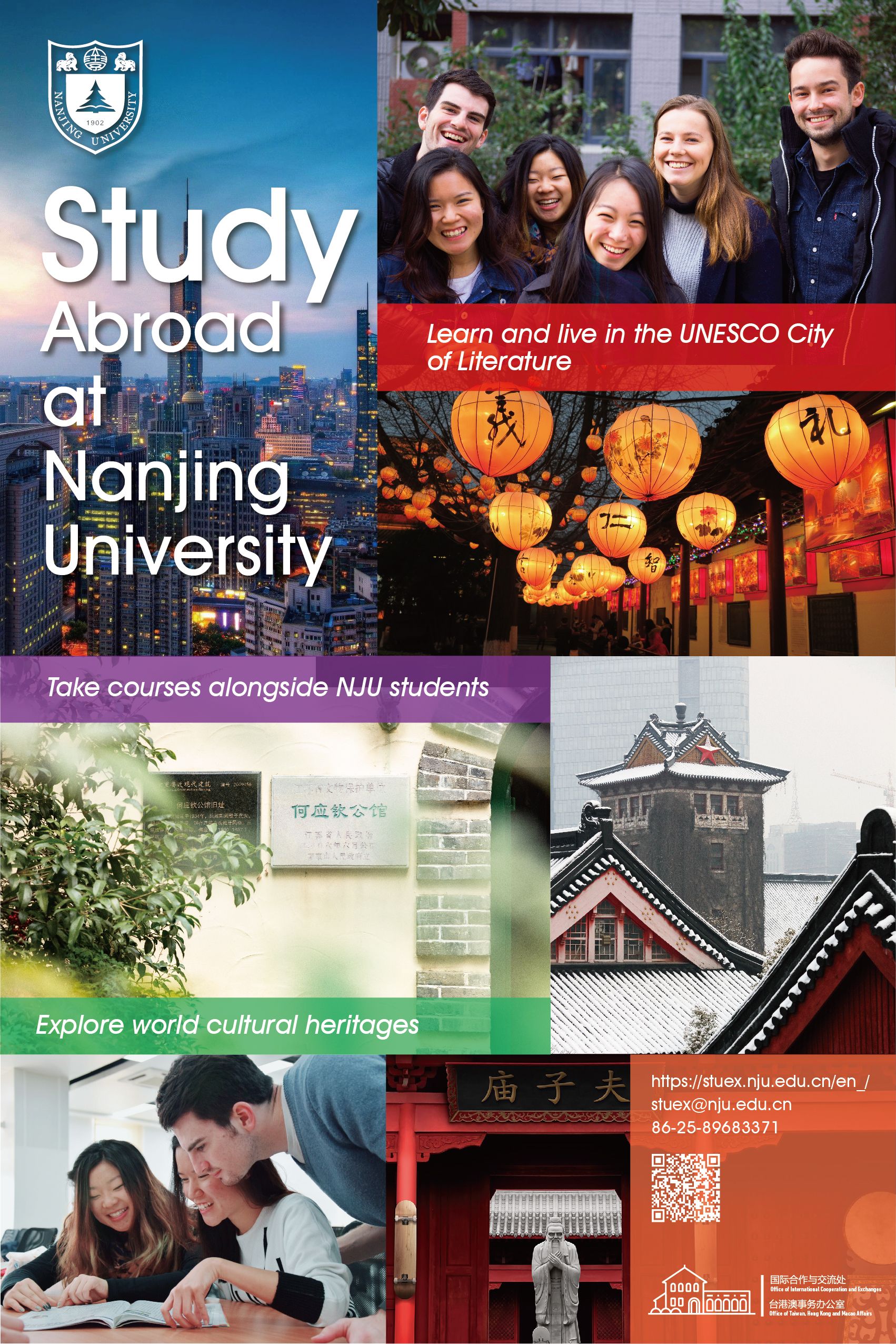 NJU has established partnerships with over 280 universities and institutions from more than 30 countries and regions. International students can study at NJU through exchange programs, visiting research programs, summer schools and degree programs. You can not only choose English and Chinese-taught academic courses, and Chinese language training courses, but also thrive in Buddy Program, student clubs and various cultural activities .