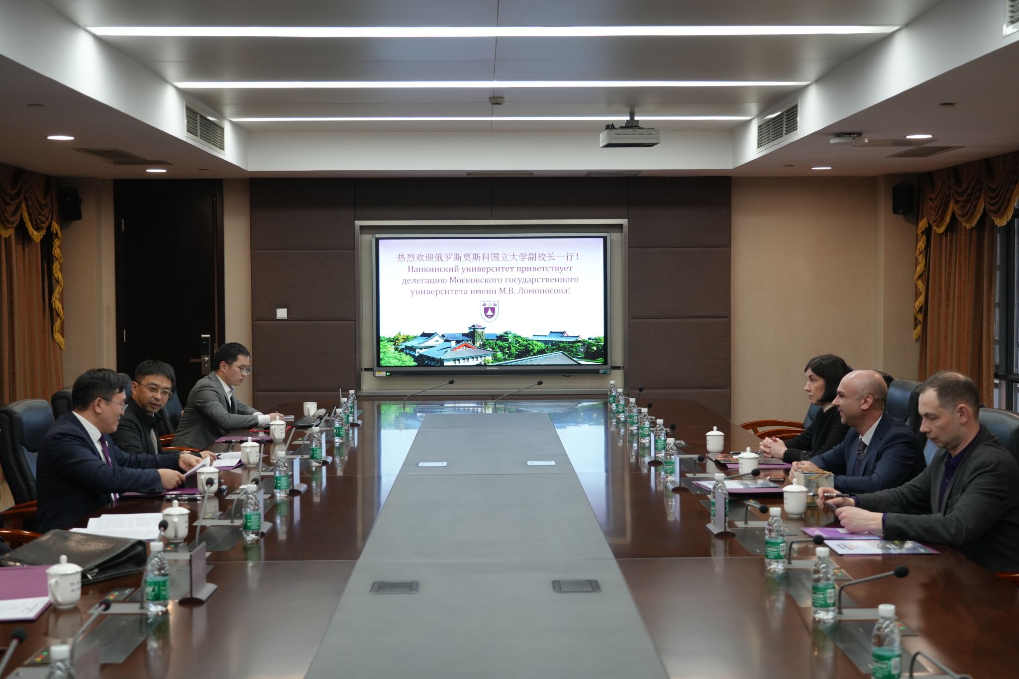 On the afternoon of March 13, Yuri Mazei, Vice President of Lomonosov Moscow State University (LMSU) led a delegation to NJU Xianlin Campus. Ding Aijun, Assistant to the President of NJU, had a discussion with the guests. The meeting was attended by representatives from the School of Geography and Ocean Science, the Department of Mathematics, the Department of Russian at the School of Foreign Studies, and the International Affairs Office.