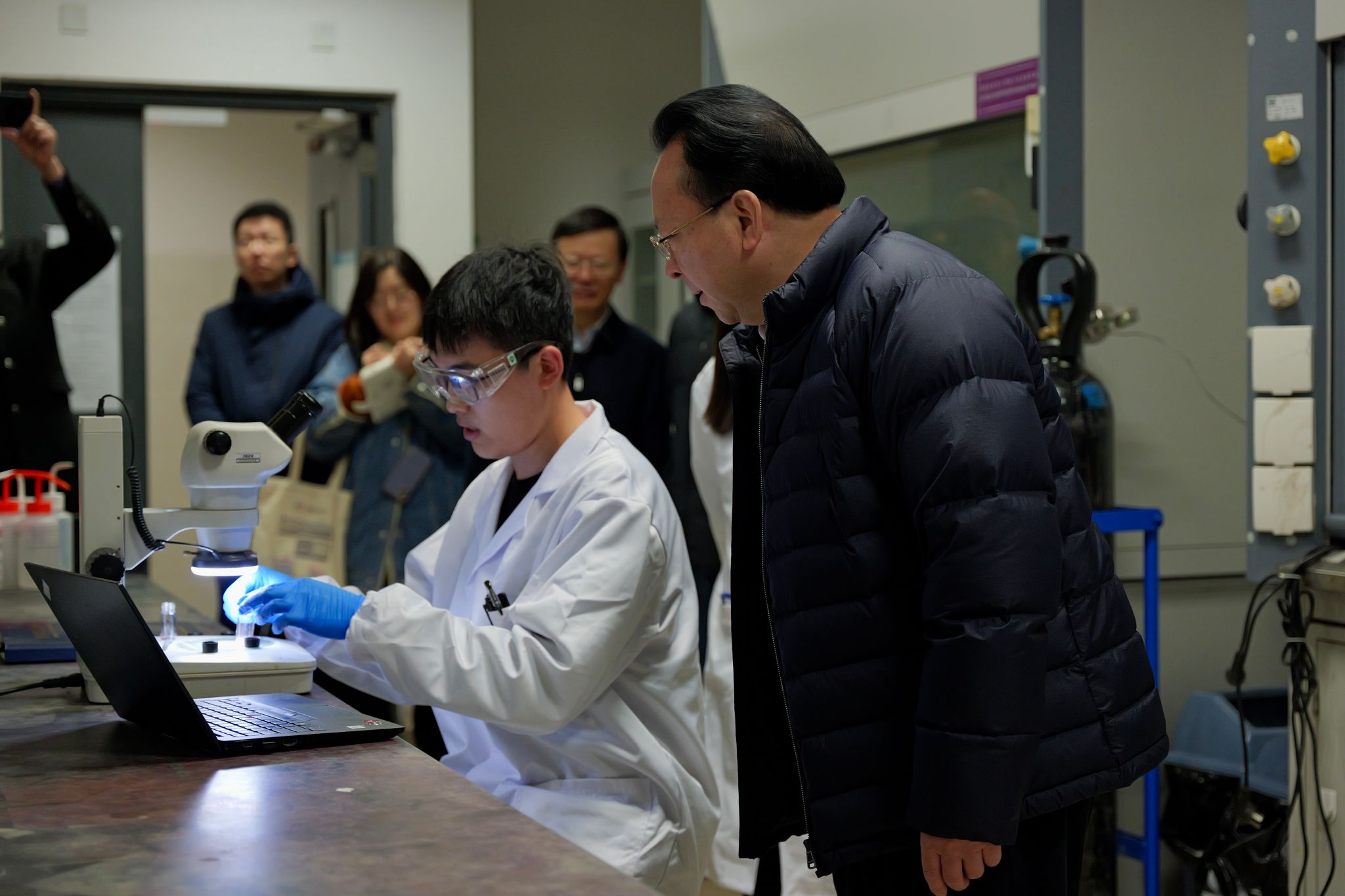 He also visited teachers and students who were still working in laboratories. He carefully checked the operation of the laboratory monitoring and early warning system of the School of Chemistry and Chemical Engineering and stressed the absolute necessity to strengthen the real-time monitoring and management of hazardous chemicals, resolutely guard against all kinds of risks, and put an end to potential safety hazards.