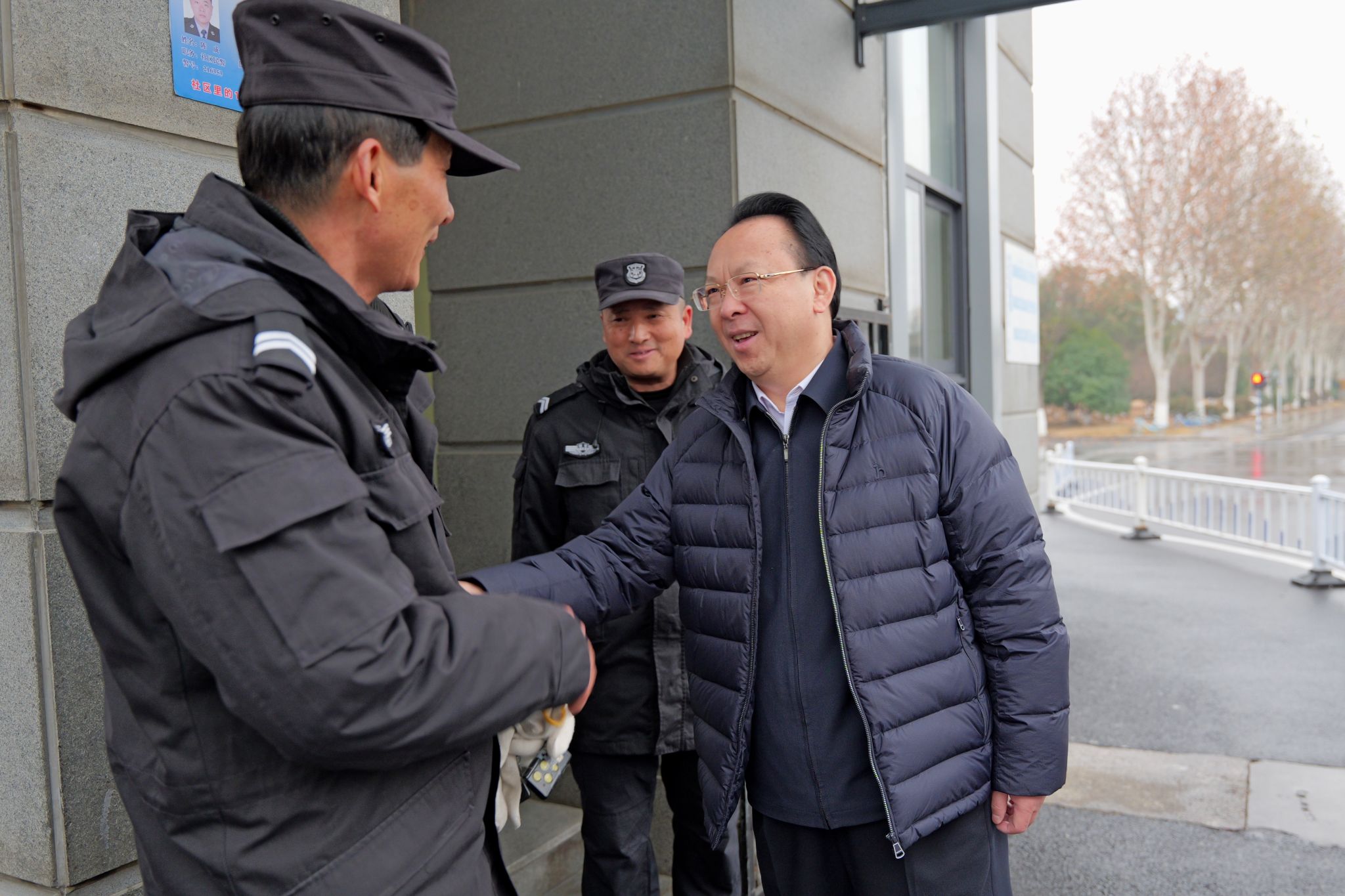 Then he visited different departments on campus including the University Hospital, the Security Office, to check out their work schedules during the winter break and expressed his gratitudes to the staff.