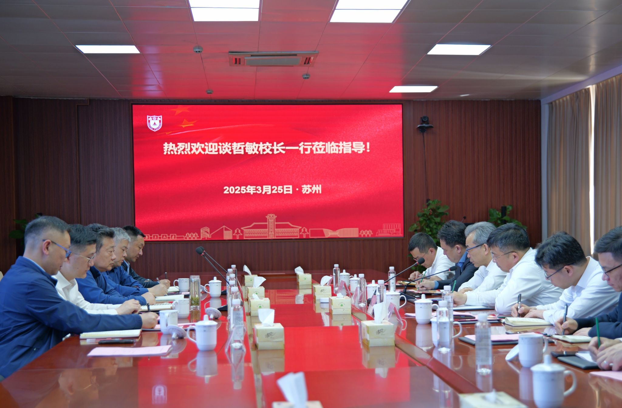 Tan listened to reports on the construction and development of the Suzhou Graduate School and the Institute of Advanced Technology. He emphasized that relevant departments should further align with the development positioning of the university and the Suzhou Campus, strengthen overall planning, clarify the future development goals and directions for the Suzhou Graduate School and the Institute of Advanced Technology, and fully utilize their geographical advantages and existing resources to elevate their work to a new level. Both institutions should continue to serve the national development agenda, focus on the actual needs of local economic and social development, strengthen collaboration between the university and local authorities, as well as with enterprises, optimize resource allocation, deepen educational model reform and innovation, and continuously achieve new results in the coordinated development of industry, academia, and research. This will contribute new momentum to the construction of the "First Nanjing University" and support Suzhou's new practice of Chinese-style modernization.