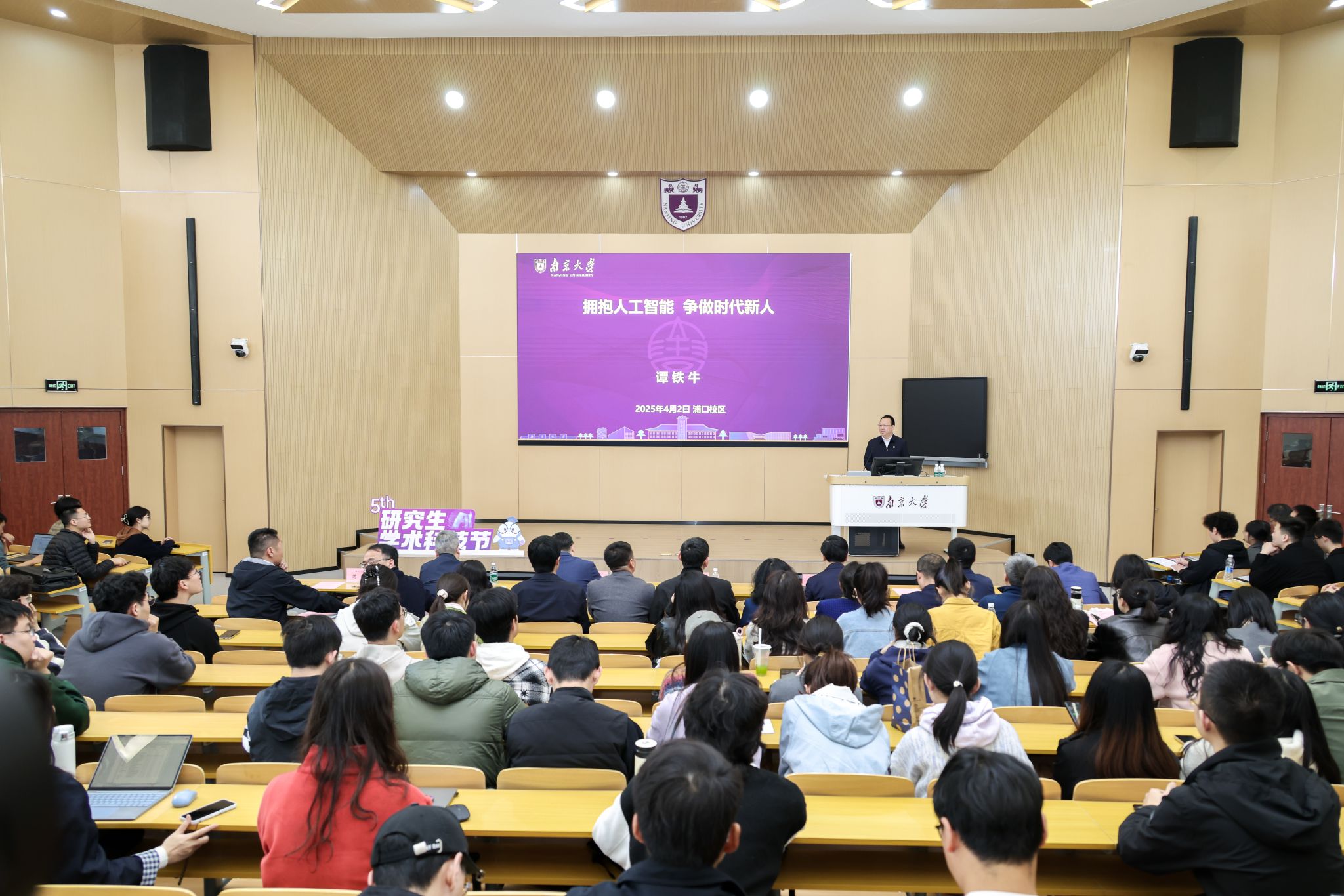 On April 2, the opening ceremony of Nanjing University's Fifth Graduate Academic and Technology Festival was held at the Pukou Campus. Tan Tieniu, Chair of NJU CPC Council and Academician of the Chinese Academy of Sciences, delivered the first lecture titled "Embrace Artificial Intelligence, Strive to Be the New Generation of the Era" to over a thousand teachers and students both online and offline. He guided everyone to appreciate the charm of artificial intelligence and encouraged them to embrace the responsibilities in the AI era.
