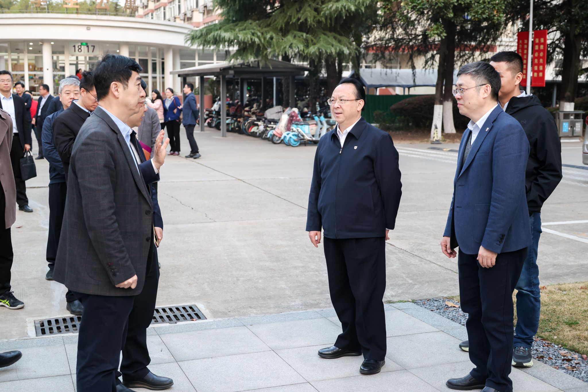 After the lecture, Tan Tieniu visited various places on Pukou Campus, including the Yuhui Building, the Zuo Dijian Sports Hall,the dormitories 17-21 and the No. 15 Student Canteen. During his visits, Tan Tieniu emphasized that responsible persons from relevant departments should truly understand students' thoughts and concerns and promptly solve urgent issues like commuting difficulties by optimizing bus routes and accelerating subway line construction, creating a comfortable, secure, and joyful campus environment at Pukou Campus, enhancing students' sense of belonging and happiness.