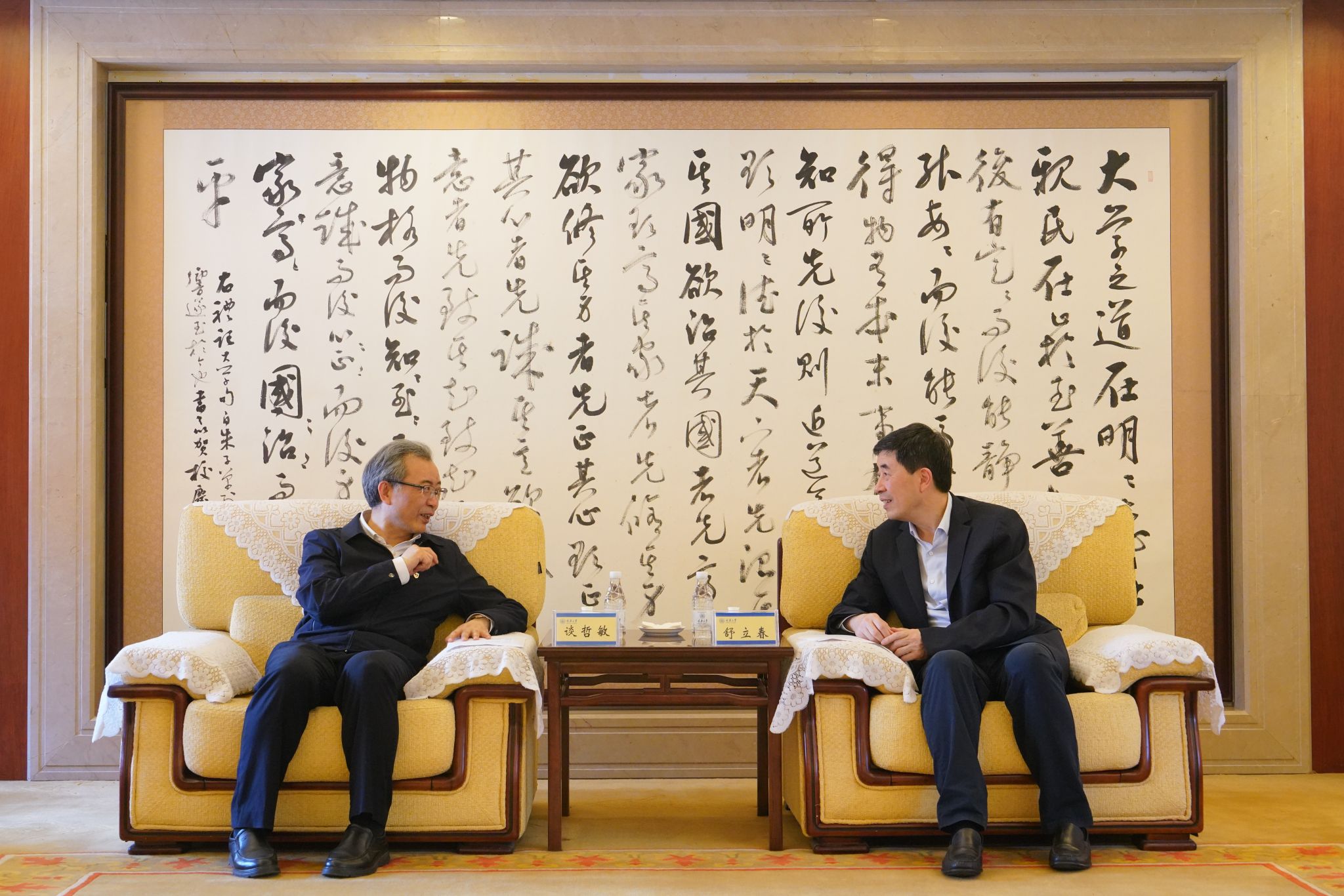 On the afternoon of April 8, Tan Zhemin, President of Nanjing University and Academician of the Chinese Academy of Sciences, led a delegation to Chongqing University. Shu Lichun, Secretary of the Party Committee of Chongqing University, met with Tan Zhemin and his delegation and introduced the university's development in recent years. Wang Shuxin, President of Chongqing University and Academician of the Chinese Academy of Engineering, accompanied the visit and held discussions with Tan Zhemin and his delegation.