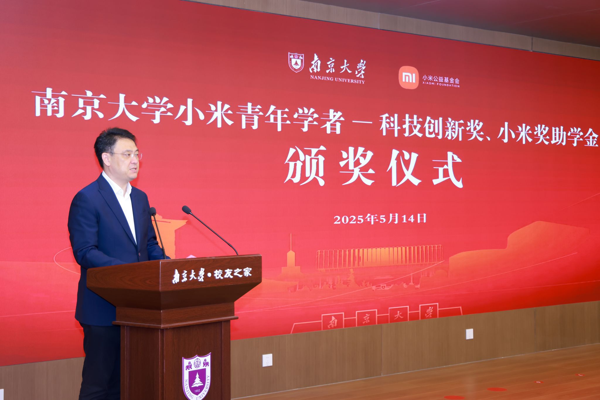 On May 14th, the award ceremony for the "Xiaomi Young Scholars - Technology Innovation Award" and "Xiaomi Scholarship" was held at the Alumni House of Nanjing University on Xianlin campus. Attendees included Liu De, Co-founder and Senior Vice President of Xiaomi Group, and Chairman of the Xiaomi Foundation; Diao Meiling, Executive Secretary of the Xiaomi Foundation; and Suo Wenbin, Member of the Standing Committee of the Party Committee and Vice President of Nanjing University.
