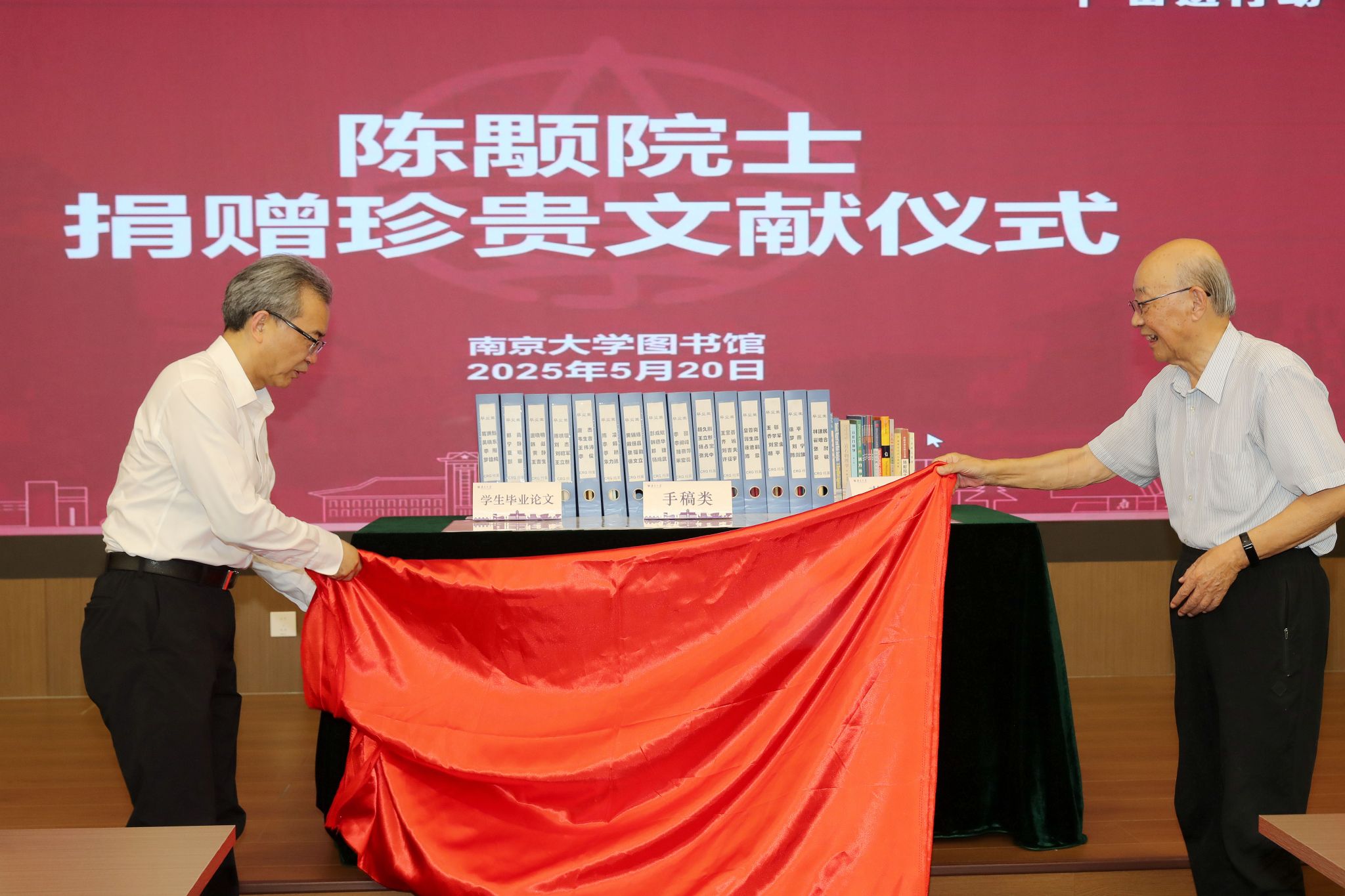 On May 20, 2025, Nanjing University held a ceremony on Xianlin Campus Library for Academician Chen Yong's donation of precious documents. Tan Zheming, President of Nanjing University and Academician of the Chinese Academy of Sciences (CAS), and Chen Yong, Professor at the School of Earth Sciences and Engineering and Academician of the CAS attended the event.
