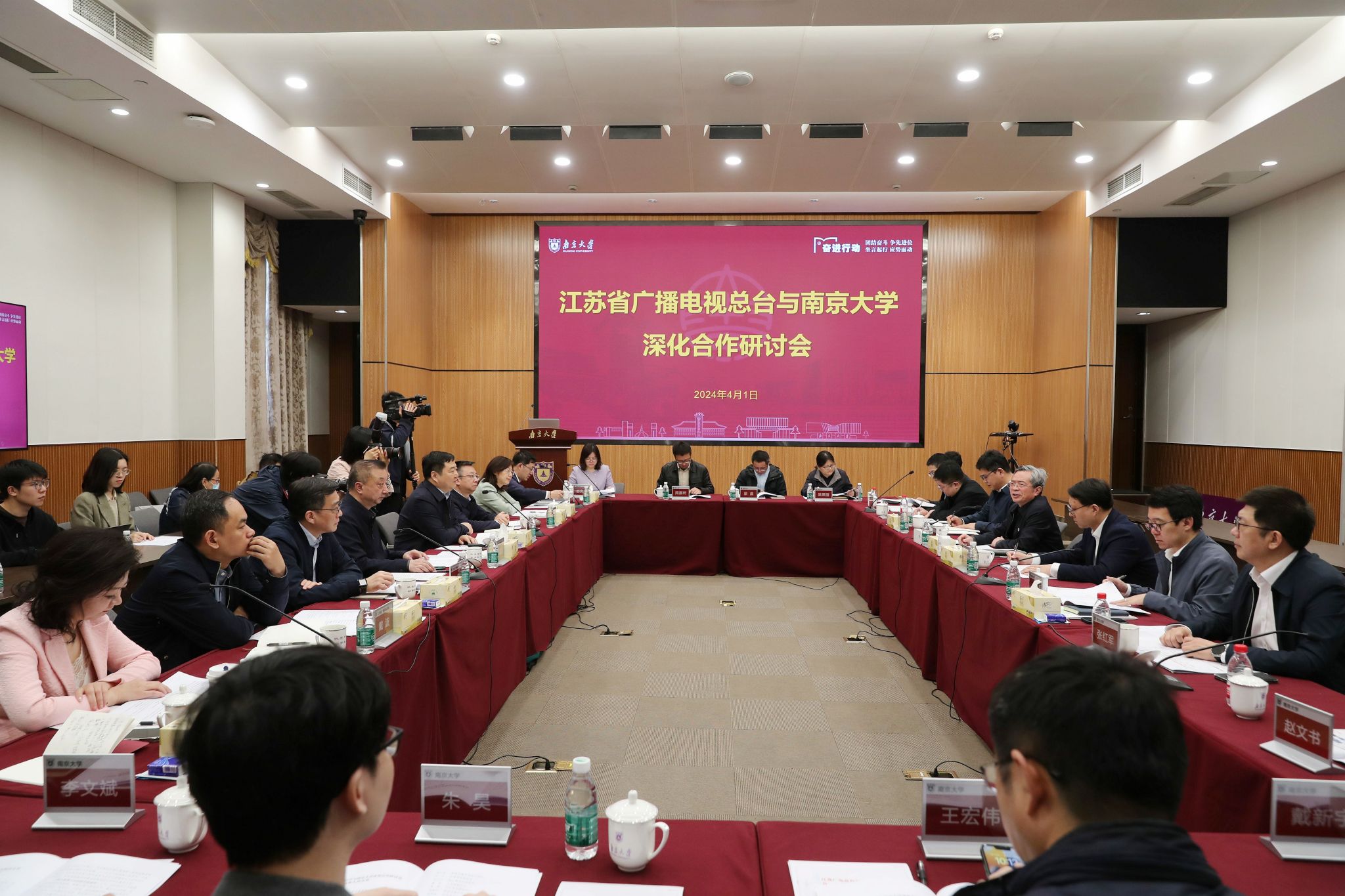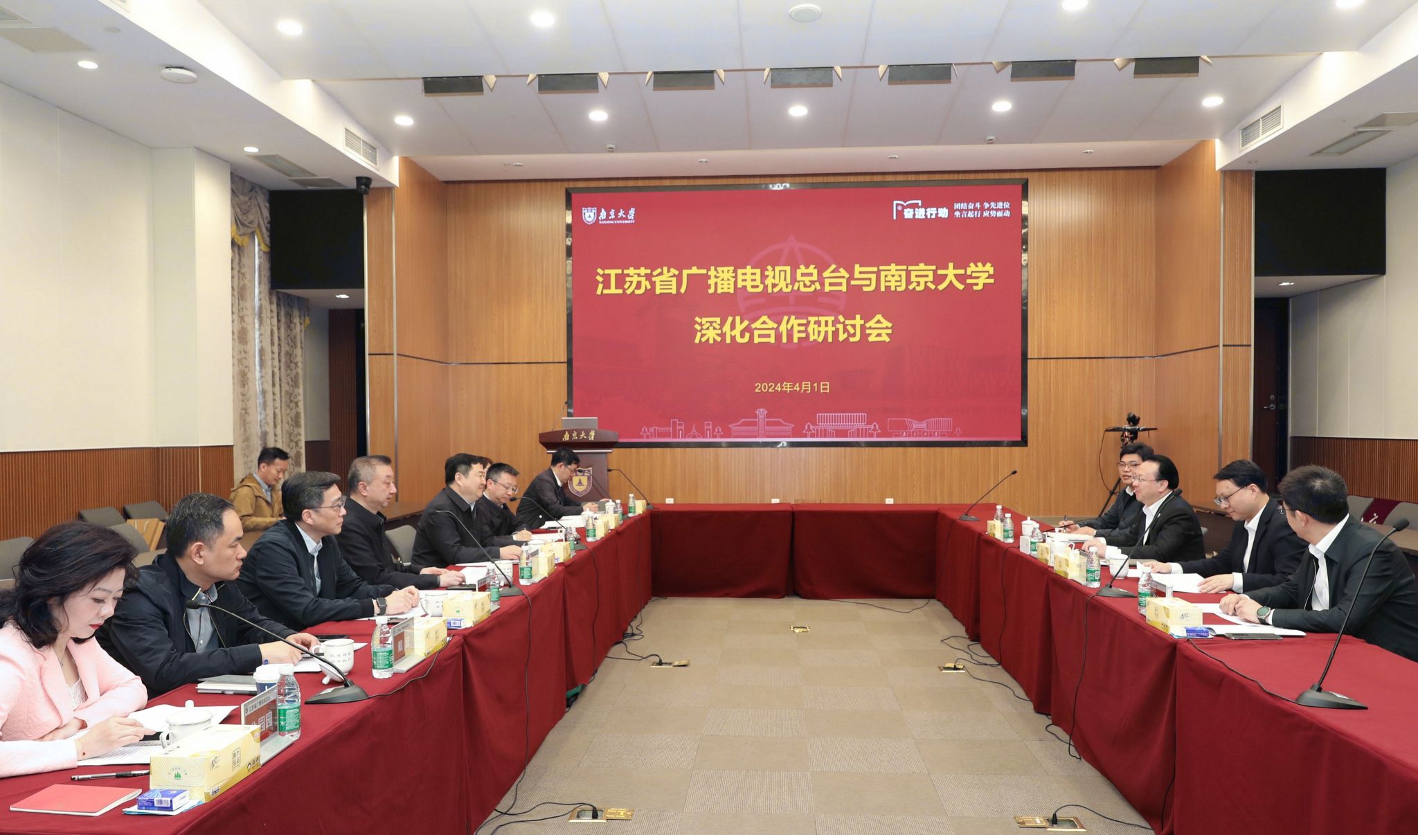On April 1, Ge Lai, President of the Jiangsu Broadcasting Corporation (JSBC), led a delegation to visit NJU to discuss enhancing cooperation. Tan Tieniu, Secretary of the CPC NJU Committee and Academician of the Chinese Academy of Sciences (CAS), met with Ge and his delegation.
