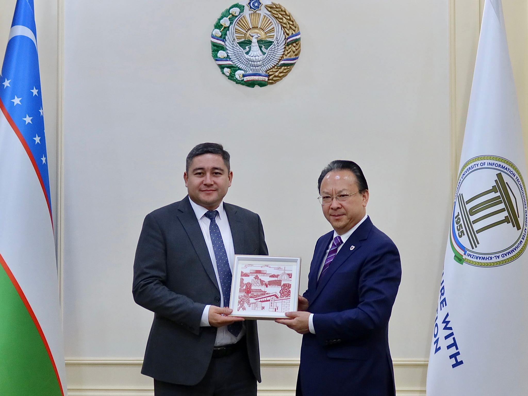 In the afternoon, the delegation visited Tashkent State Technical University. President Turabdjanov Sadritdin Maxamatdinovic and Vice President Oripjon Olimovich Zaripov met with the delegation. Both sides discussed on student exchange, faculty visits, joint research, academic conferences, and technology transfer.