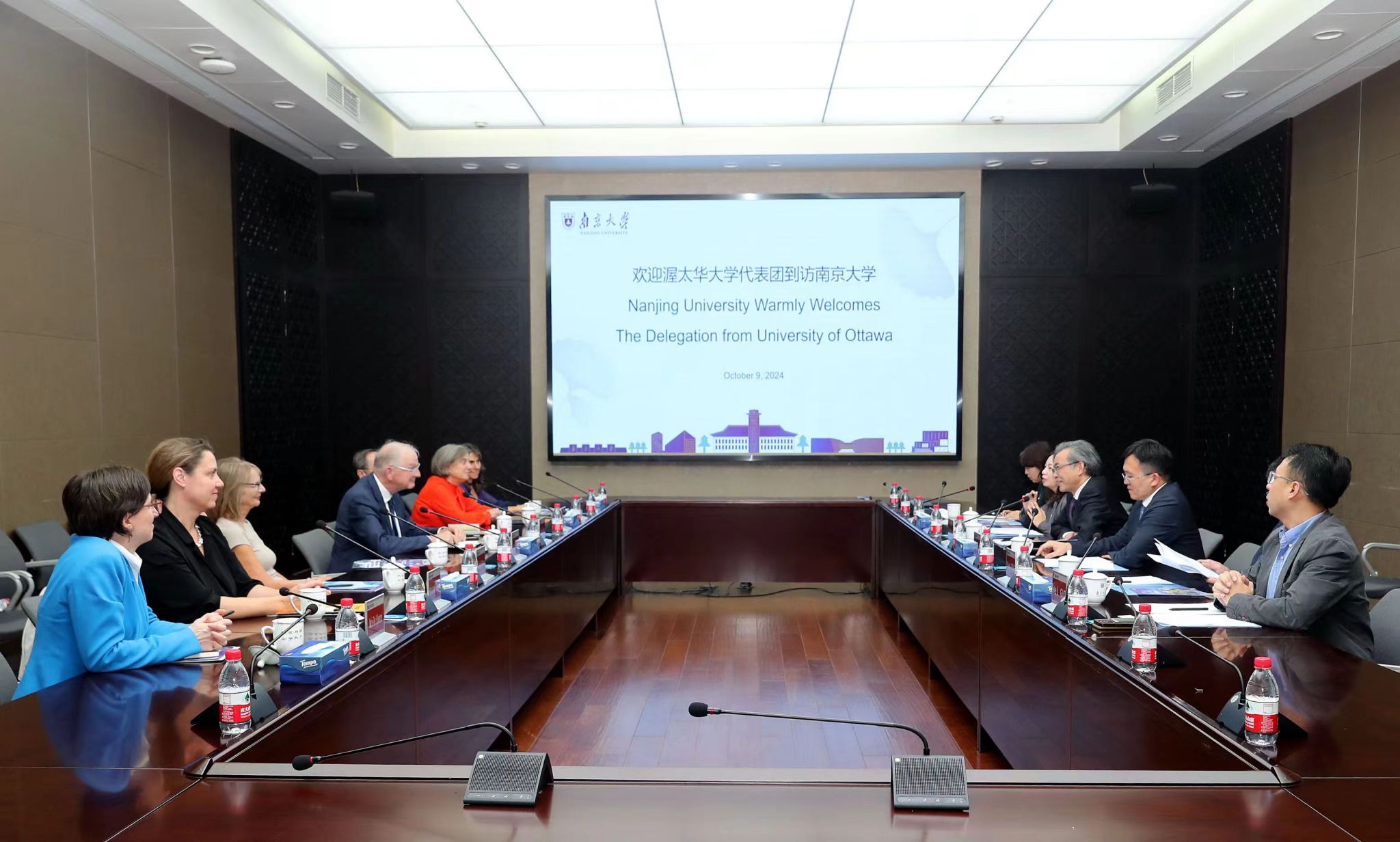 On behalf of NJU, Tan warmly welcomed the delegation. He briefly introduced NJU, covering its history, disciplines, talent cultivation, research innovation, and global engagement strategy. In recent years, NJU has been promoting a global engagement strategy and launched a series of new measures to promote international cooperation. NJU has already established close cooperative relationships with many Canadian universities and achieved significant results in areas such as scientific research and student exchanges. He expected more cooperation between NJU and uOttawa.