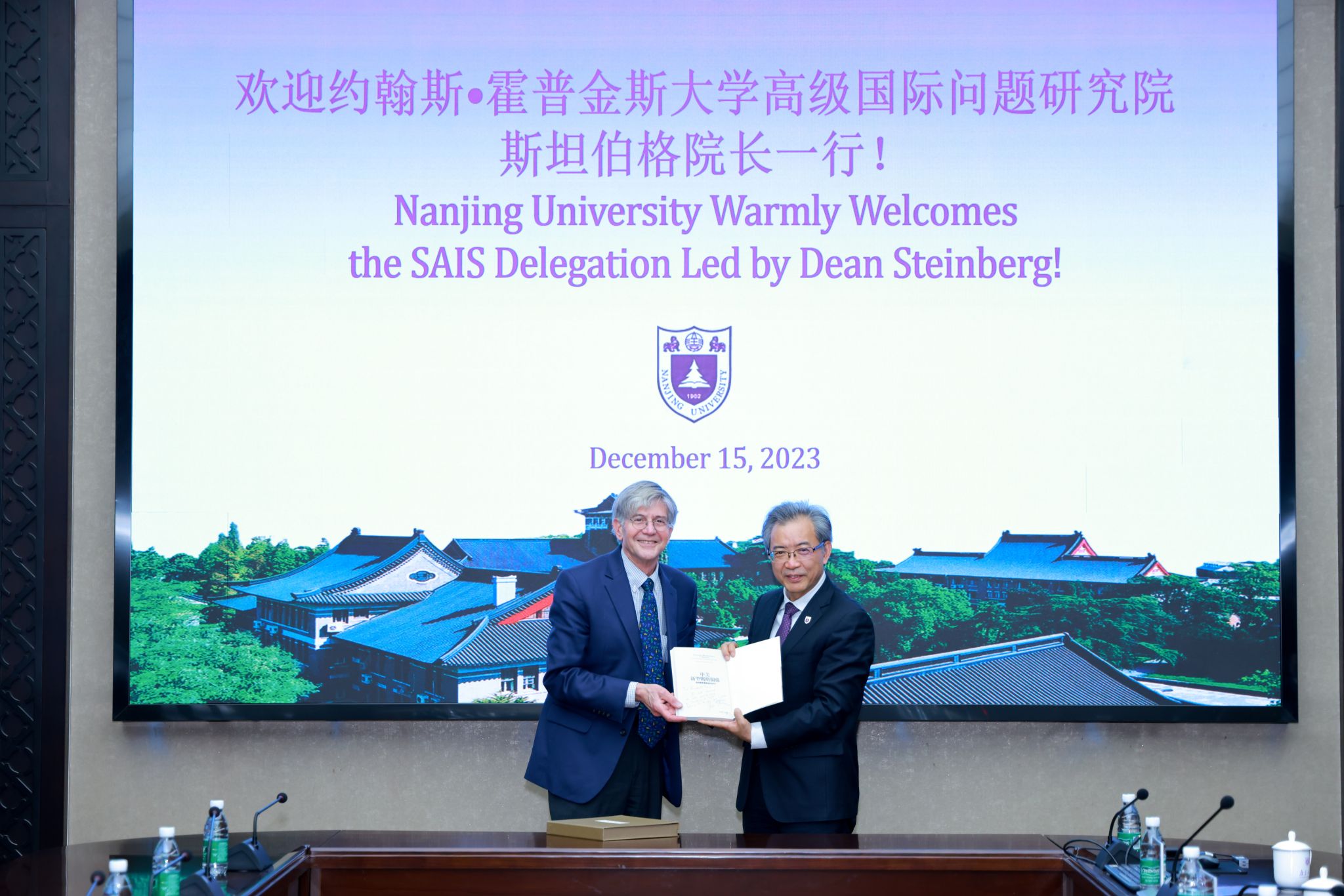 On behalf of Nanjing University, President Tan welcomed Dean Steinberg and his delegation and revisited the history and current development of the Hopkins-Nanjing Center. He pointed out that Nanjing University and Johns Hopkins University have always adhered to the original intention of seeking common ground while shelving differences, promoted mutual learning and open exchange of ideas, and worked towards forging a common path. The center’s philosophies of “bridging languages, cultures, disciplines and borders” and “learning, living, growing and developing together” enable teachers and students from China, the United States and other countries with different growth experiences and educational backgrounds to communicate, make friends, and build heartfelt relationships based on mutual respect. Facing a challenging global future, President Tan hopes that the two universities will deepen cooperation, enhance the platform effectiveness and international influence of the Hopkins-Nanjing Center, expand support resources and areas of cooperation, and work together for the prosperity of Sino-U.S. cultural and educational exchange.