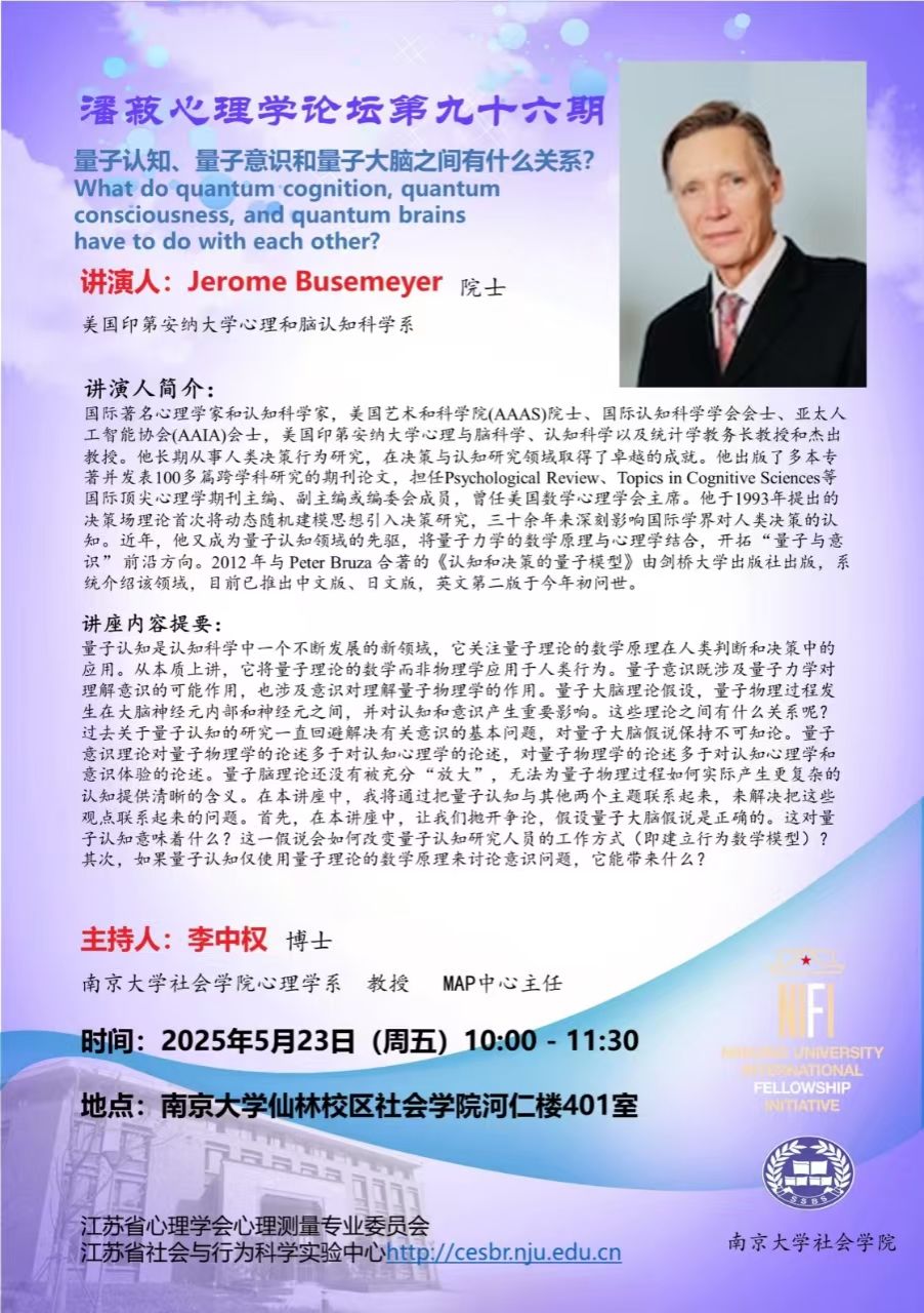 Busemeyer is a quantitative theorist in the field of human decision making, with numerous well crafted empirical studies. Such research made him a leader in his field long ago. He has been the founder and leader of the rapidly growing field of quantum cognition, which holds that human concepts of probability follow those of quantum probability. His approach provides new insights into what were believed to be irrational instances of human behavioral and economic decision making. His book and many workshops and colloquia have established this field.
