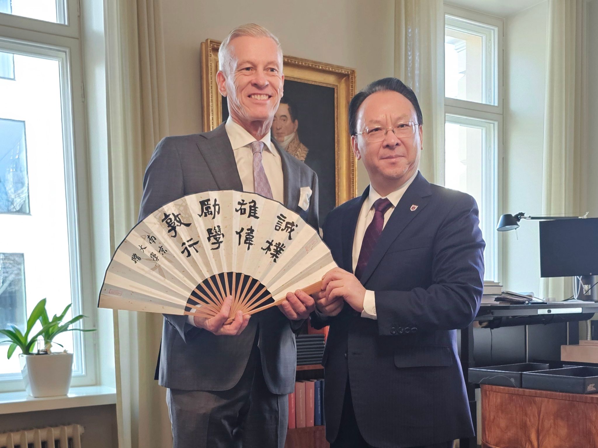 谭铁牛与赫尔辛基大学校监Kaarle H?meri座谈交流