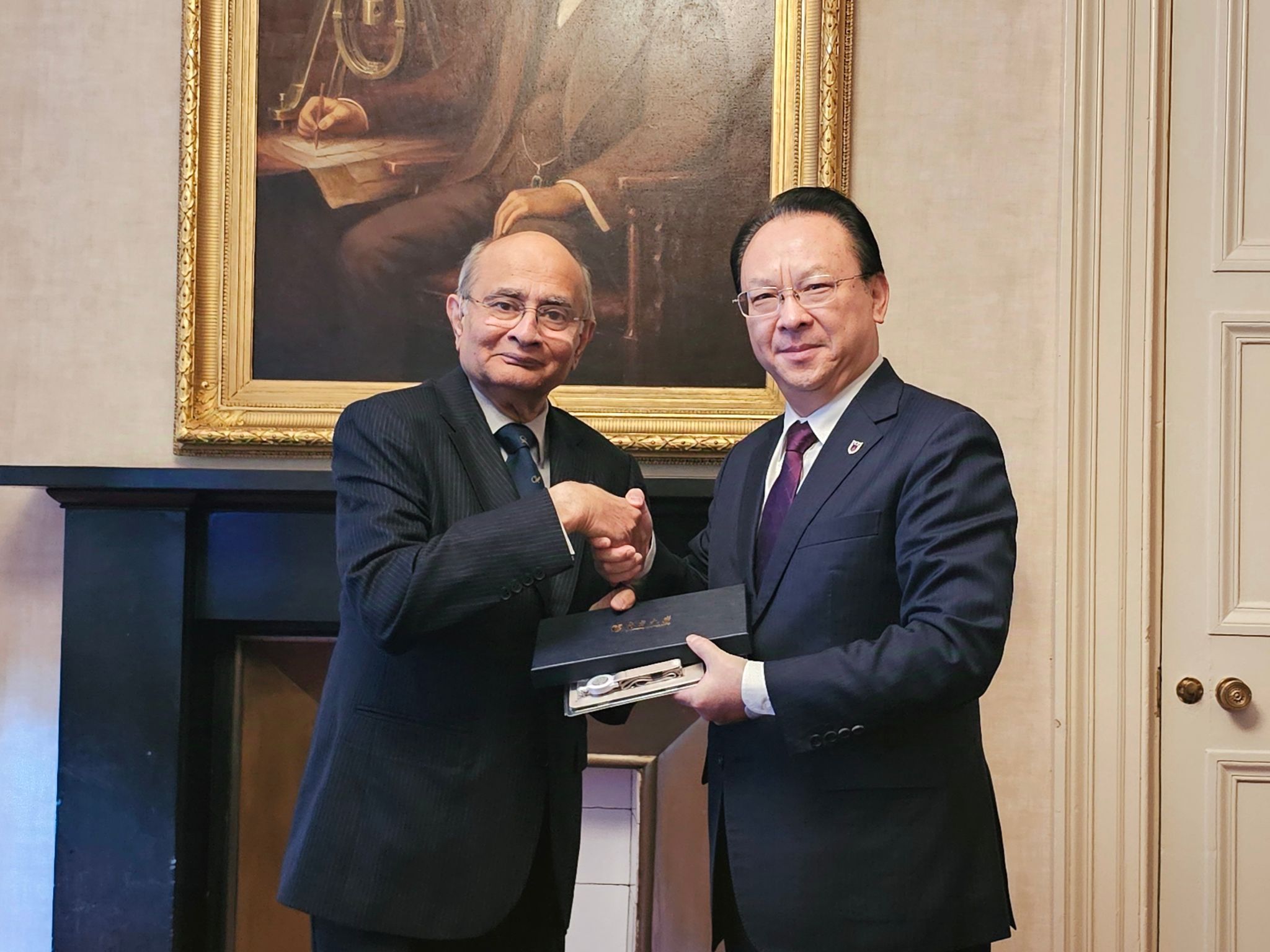 代表团访问了伦敦大学学院并会见校长Michael Spence教授。双方就签署校际合作协议、深化两校合作达成共识,未来拟通过联合科研项目和设立种子基金等形式加强在医学、数学、化学工程、物质科学以及商学等方面的务实合作,期望通过资源共享与互补,推动双方合作共赢。此外,双方还就开展联合教学、青年学者交流及管理人员培训等项目进行了深入探讨,旨在通过多元化的合作渠道,构建长期稳定的合作关系。