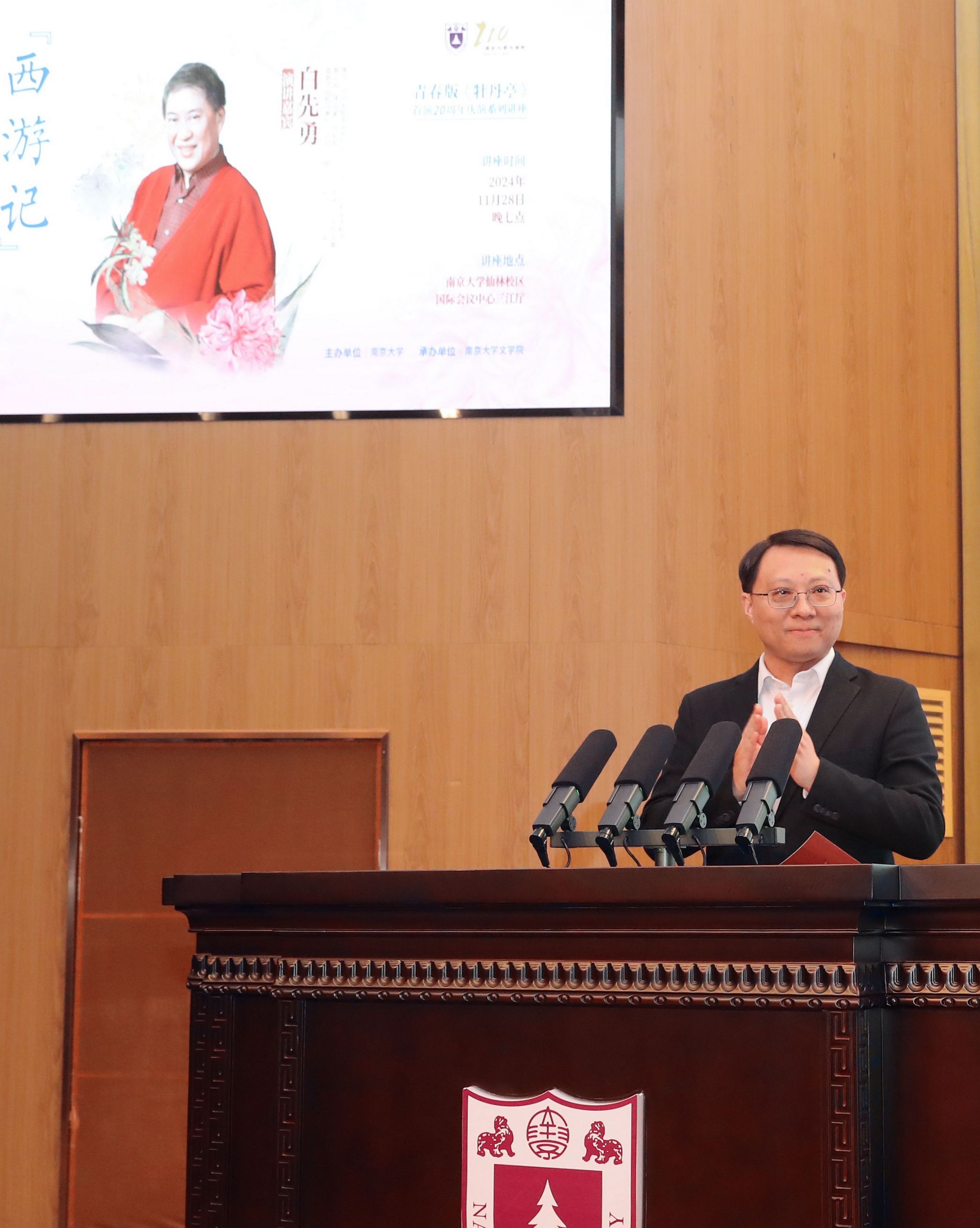 秋意露华浓,雅音绕南雍。11月28日晚,青春版《牡丹亭》20周年庆演活动压轴亮相金陵之际,著名作家白先勇再访百廿学府凯发k8官网,为师生带来“青春版《牡丹亭》‘西游记’”主题讲座,并受聘为凯发k8官网杰出客座教授。“凯发k8官网昆曲传承发展研究中心”也于当天揭牌成立。凯发k8官网党委副书记陈云松出席活动并致辞。
