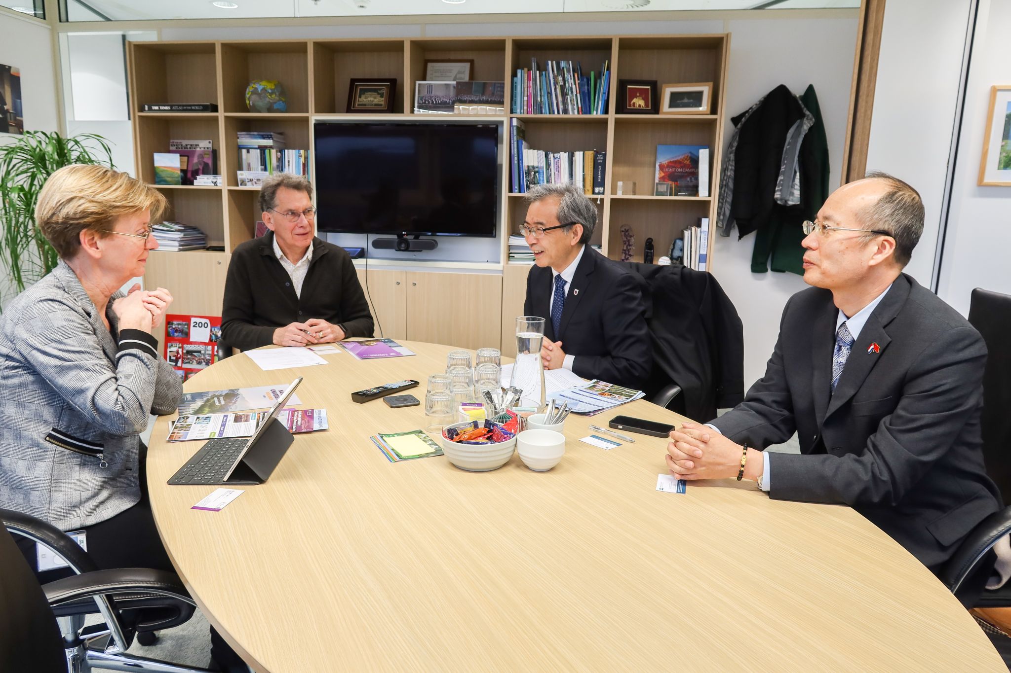 谈哲敏(右二)与卡罗琳·克罗兹(左一)会谈