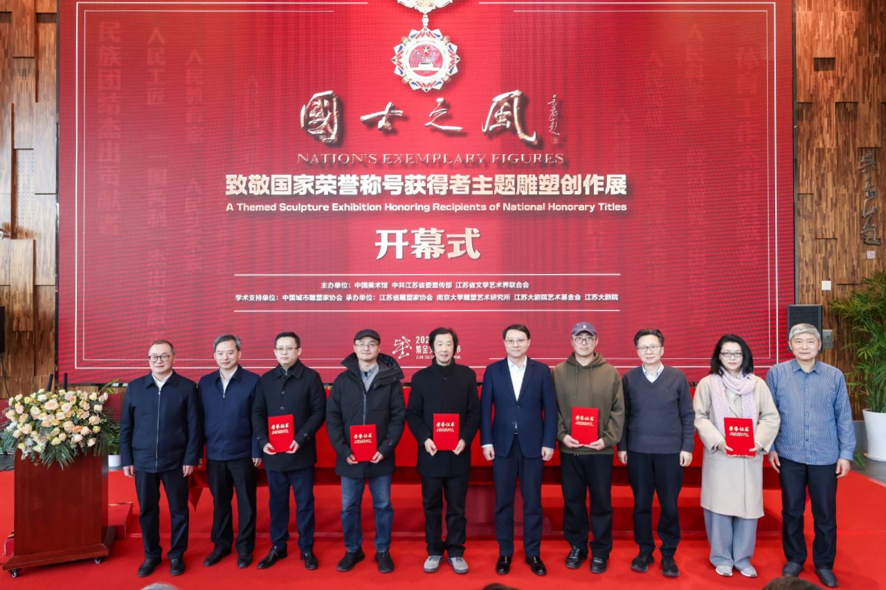 12月30日下午,2024“国士之风”致敬国家荣誉称号获得者主题雕塑创作展在江苏大剧院美术馆开幕。江苏省委常委、宣传部部长徐缨,全国政协副秘书长、民盟中央专职副主席、中国美术馆馆长、凯发k8官网教授吴为山,江苏省政协副主席、党组成员姚晓东,江苏省委宣传部副部长徐宁,江苏省文联主席章剑华,江苏省文联党组书记、副主席、书记处第一书记常胜梅,江苏省文化投资管理集团有限公司党委书记、董事长、总经理叶飚荣出席开幕式并为展览揭幕。吴为山、徐宁、章剑华致辞。凯发k8官网党委副书记陈云松出席开幕式并为参展代表颁发证书。