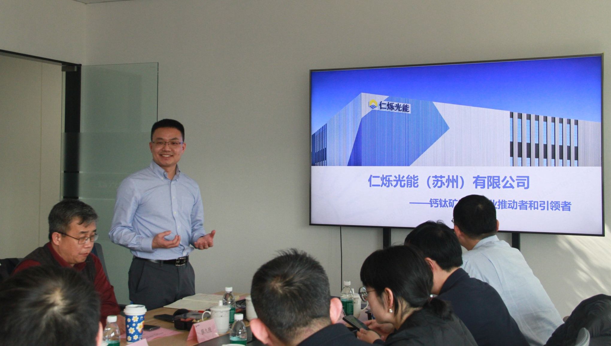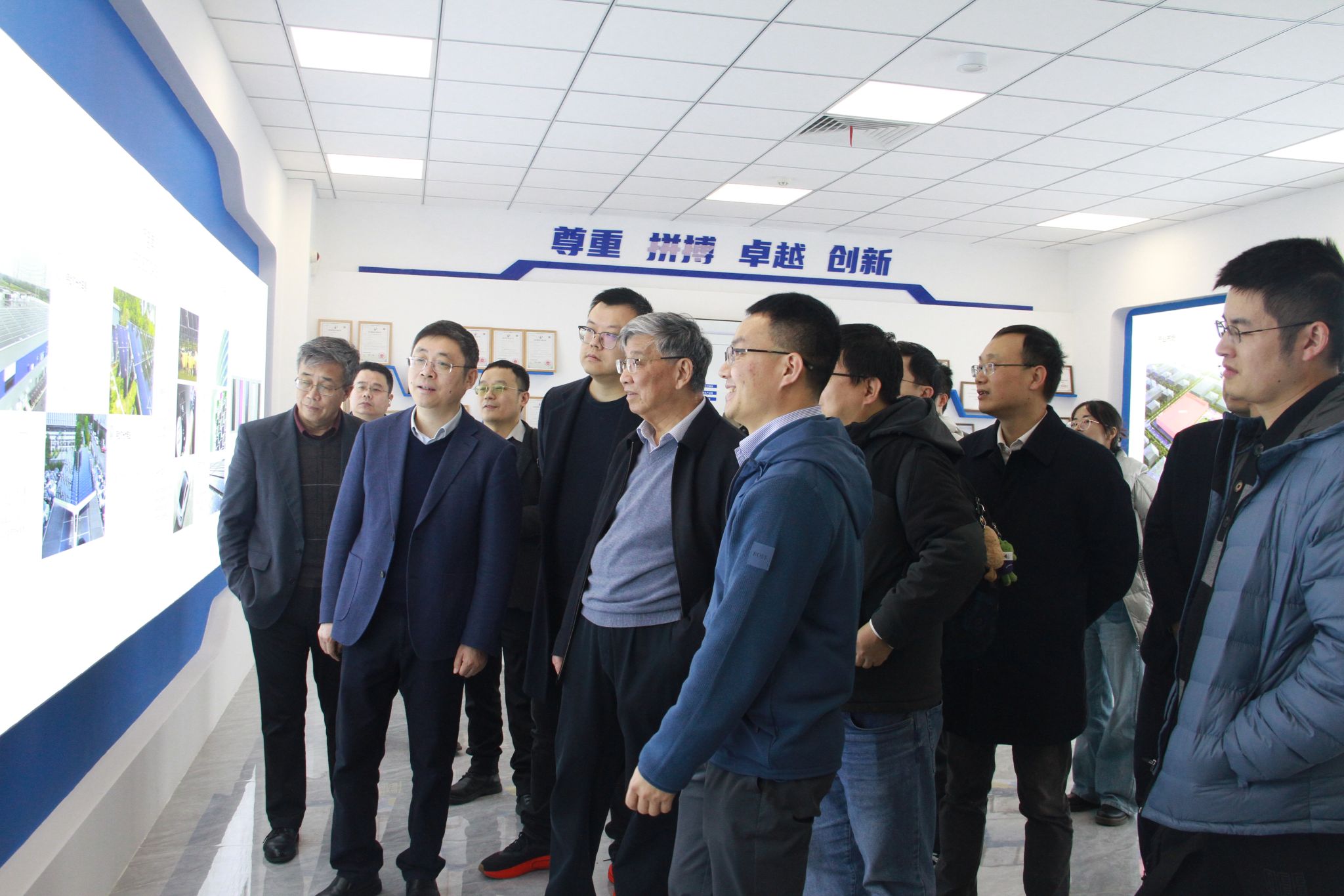 中国科学院院士祝世宁教授与大家共同参观了仁烁光能(苏州)有限公司。代表团还参观了苏州南智芯材科技有限公司和苏州声学产业技术研究院,实地考察常熟创新创业环境。