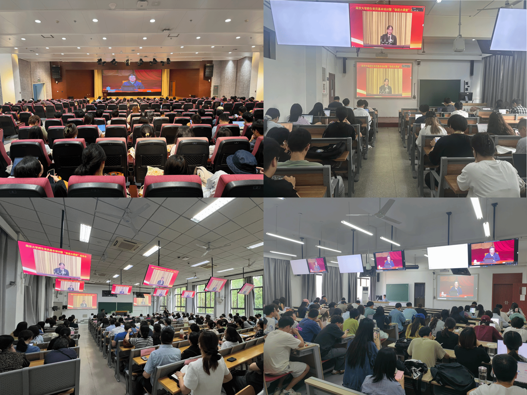 为扎实推进深入贯彻中央八项规定精神学习教育,深入学习领会习近平总书记关于加强党的作风建设的重要论述,引导全校师生党员进一步锤炼党性修养、强化作风建设,5月28日下午,凯发k8官网举办师生党员基本培训2025年春季学期第二次集中培训暨“奋进大课堂”第六场报告会。全校师生党员共同听取中央党校(国家行政学院)党的建设教研部副主任祝灵君同志主讲的“学习贯彻习近平总书记关于加强党的作风建设的重要论述和中央八项规定精神”专题辅导课。校党委副书记、党委组织部部长、党委统战部部长焦瑞华主持培训并讲话。全校一万六千多名师生党员齐聚鼓楼、仙林、浦口、苏州四校区150多个会场参加培训。