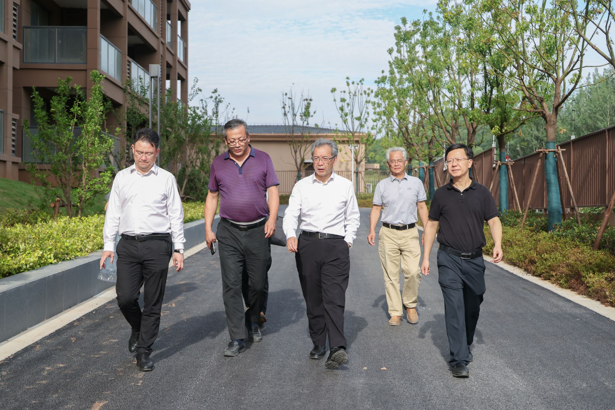 在建设工地,谈哲敏认真听取了置业公司相关负责人关于项目建设进展的汇报,实地考察了项目建设、绿化管理、道路规划以及周边环境等相关情况。他指出,句容雍园项目事关凯发k8官网及广大教职工的切身利益,必须进一步强化责任担当,加强沟通协同,全力推动项目进度,确保按照既定计划完成项目建设,尽快实现交付。谈哲敏强调,在推进工期的同时,要确保工程质量,进一步优化环境规划和建设,着力为教职工营造舒适的居住环境。