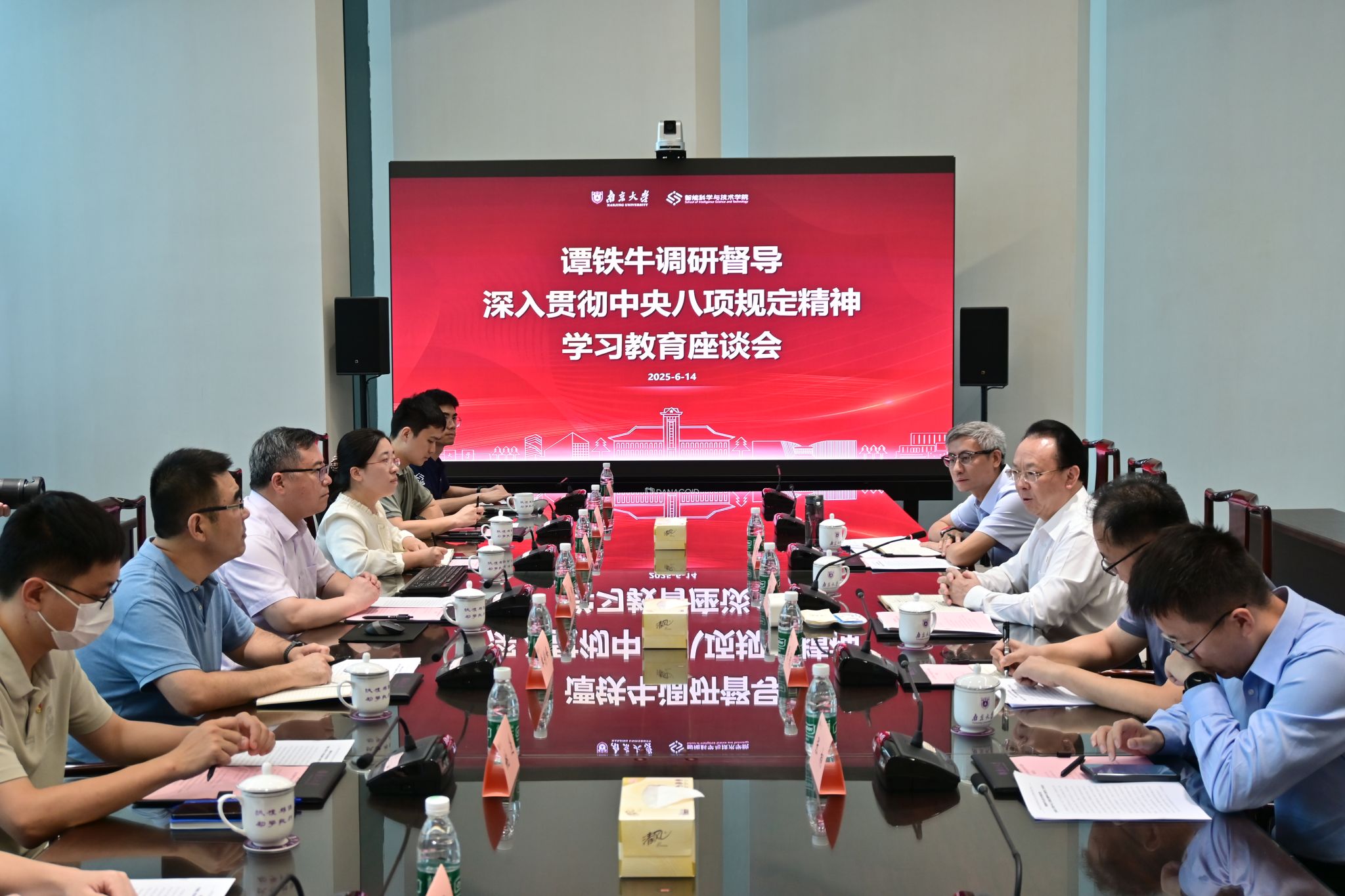在智能科学与技术学院,谭铁牛详细了解了深入贯彻中央八项规定精神学习教育推进情况,对相关工作成效和围绕学院发展的积极建言给予充分肯定。他强调,智能科学与技术学院聚焦学科前沿、青年学者众多,是富有朝气的新学科,在学科建设、队伍建设、人才培养、育教融合等方面始终走在前列,发挥了重要的示范作用。未来要继续“走在前、做示范、树标杆”,坚决杜绝官僚主义、形式主义,力争把学院建设成为苏州校区王牌学院。