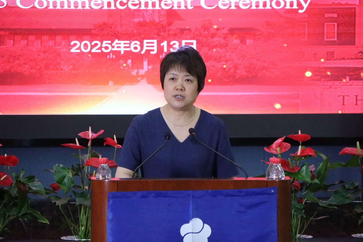中方主任李晓蓉致开幕词。她祝贺毕业生们顺利完成学业,成为“既懂中国,又懂世界”的有用之才,并期待中心学子能够始终秉持开放包容的心态,借助对话的力量,持续搭建理解之桥,立足中国,放眼世界,不断追逐梦想,迈向卓越。