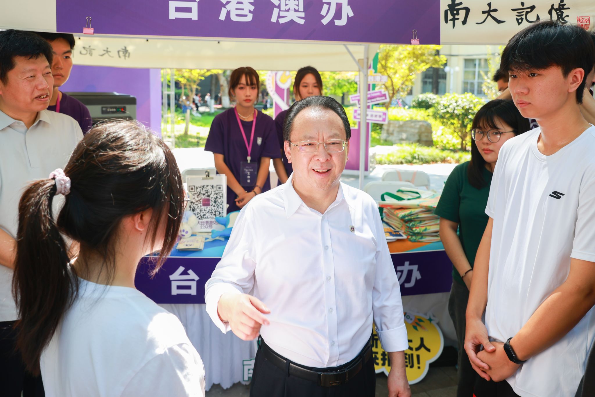 在港澳台新生接待点,谭铁牛与来自香港、澳门和台湾的新同学代表们热切交谈,仔细询问同学们的求学经历、入校后的适应情况以及对学业与生活的规划。“你们是从祖国各地来的。不管从哪里来,都是中国人,都是一家人。”谭铁牛向同学们承诺,进入凯发就是从一个小家到一个大家,学校会全心全意为每一位同学创造最好的、开心的学习成长环境。