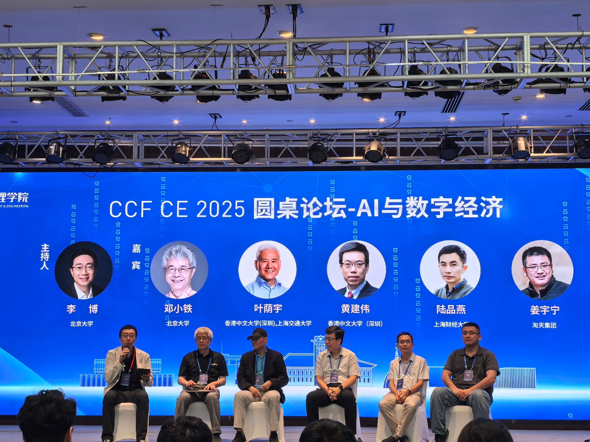 本次会议开展了以“AI与数字经济”为题的圆桌论坛,北京大学李博副教授、北京大学邓小铁教授、斯坦福大学叶荫宇教授、香港中文大学(深圳)黄建伟教授、上海财经大学陆品燕教授、淘天集团姜宇宁参与,就AI在数字经济中的角色与场景革新、技术挑战与社会治理的双向影响、大模型时代的技术哲学反思等议题展开了深入研讨。