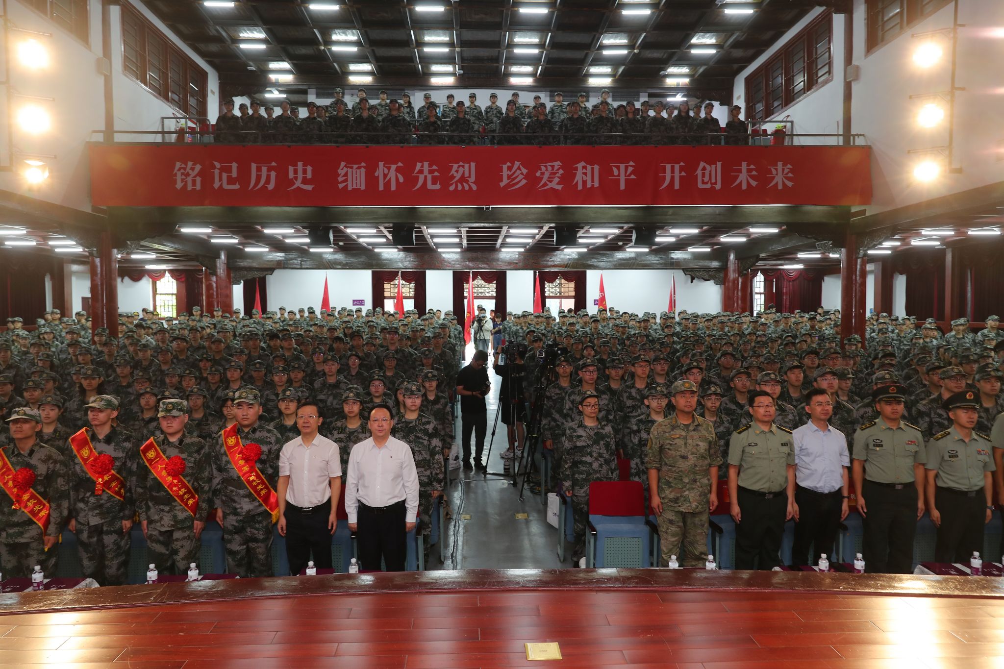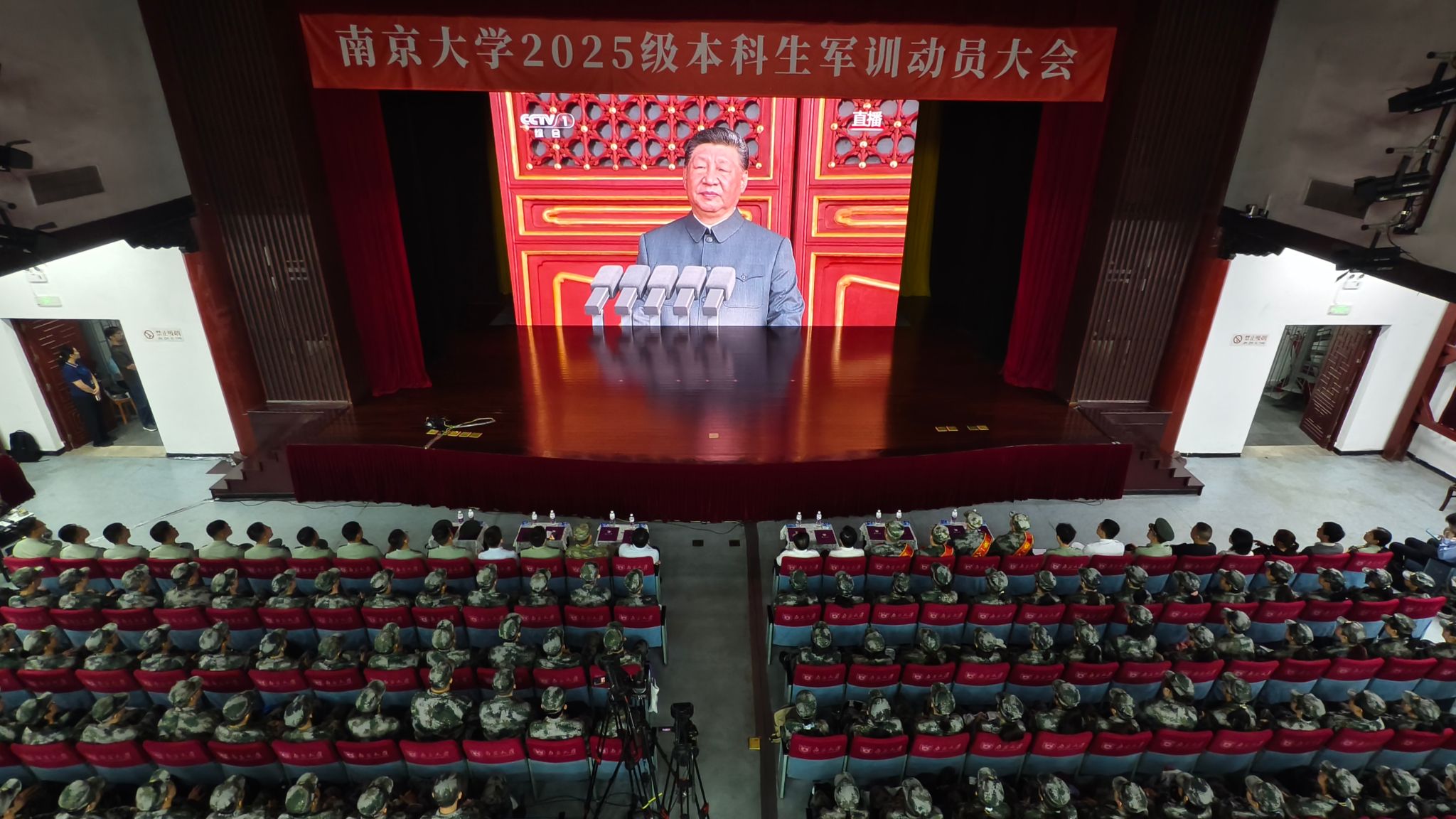 动员大会后,谭铁牛与军训教官、指导员、参训学生、应征入伍大学生及父母代表、退役复学大学生代表等在大礼堂共同观看了纪念中国人民抗日战争暨世界反法西斯战争胜利80周年大会和阅兵式实况转播。其他3200余名参训学生在各教室收看转播。