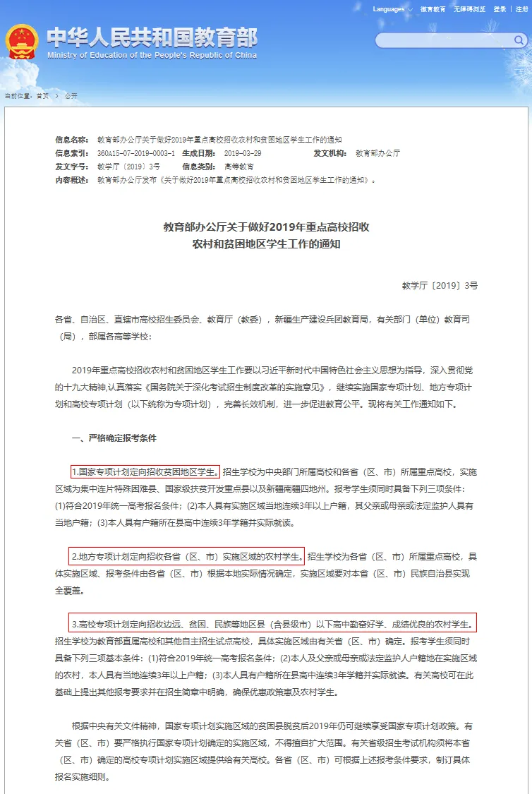 国家专项计划、高校专项计划、地方专项计划