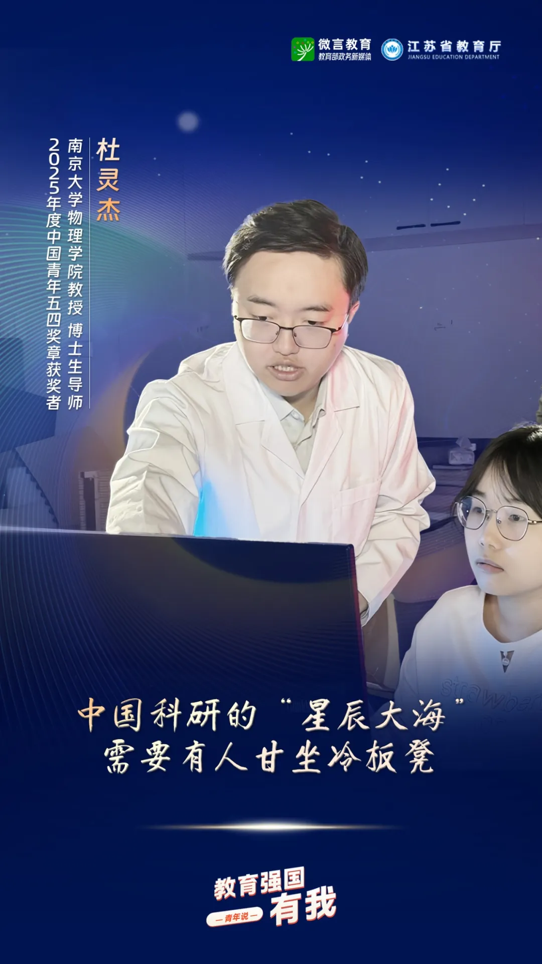 习近平总书记强调,全面推进强国建设、民族复兴伟业,正是年轻一代展示才华、大显身手的好时候。教育强国建设,青年何为?日前,教育部政务新媒体推出“教育强国,有我!”网络主题宣传活动之“青年说(奋进篇)”系列,展现青年师生以青春之我、奋斗之我投身教育强国建设的生动实践。今天,跟教育小微通过1个微视频和1组海报,与2025年度中国青年五四奖章获得者、南京大学物理学院教授杜灵杰共同探索“从0到1”的“引力子” ——