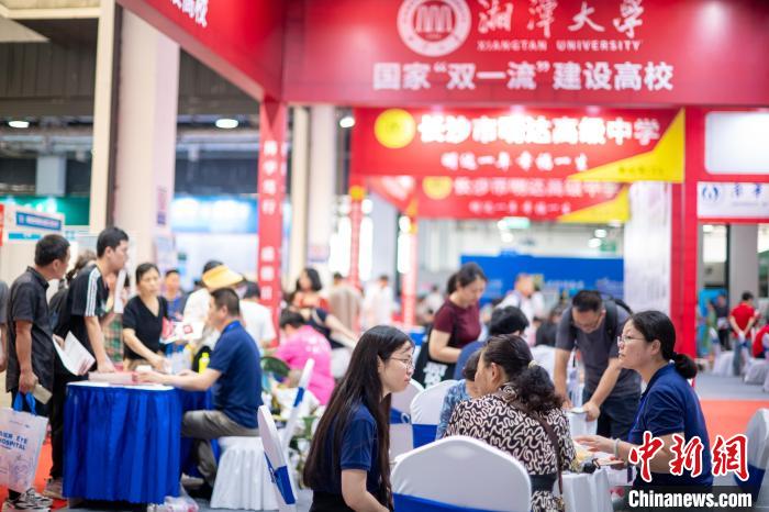 中新网长沙6月26日电 26日,湖南省2025年高考志愿填报正式开始。当日,由中南国际会展主办的第十六届湖南教育博览会暨2025全国高校在湘招生咨询会(以下简称“湖南教博会”)在长沙红星国际会展中心开幕。
