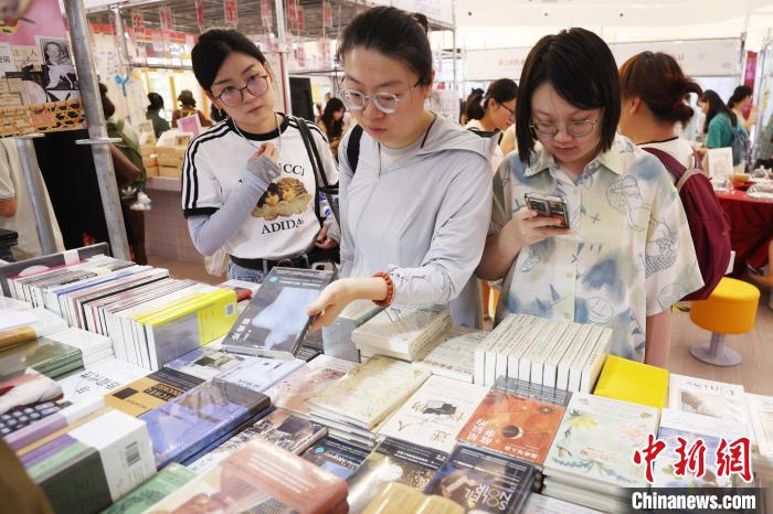 7月5日,江苏凯发k8官网,年轻人在图书市集上拍摄照片。中新社记者 泱波 摄