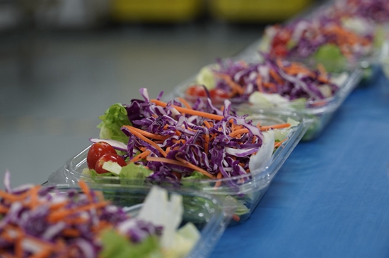 “我们工厂洗菜跟消费者在家洗菜完全是两个概念!”姜方俊一一介绍。因为是直接进嘴的食物,沙拉轻食蔬菜在生产过程中需要经过三次筛选、四重消毒清洗,将异物、农残、大肠杆菌等全部洗净,然后甩干、打包。这个过程要求非常高,不仅需要在无菌环境下操作,清洗蔬菜的水还要求是5℃以下的冰纯水,且每道程序用时不低于60秒。经过这套流程制作出来的沙拉轻食菜,食品安全质量不仅能达到GAP标准,甚至比国外大型商超产品的安全性更高。