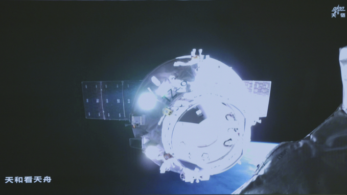 7月15日,天舟九号货运飞船正向空间站组合体靠拢 新华社发