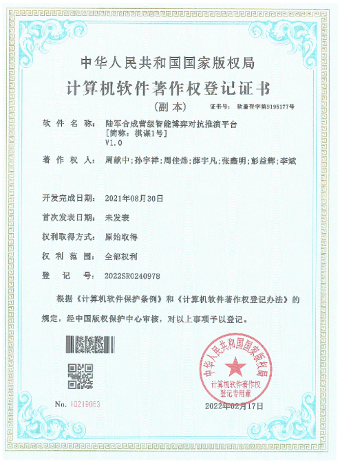科研领跑,智能赋能:凯发k8官网在智能兵棋推演领域取得突破性进展,多篇高水平研究论文发表于国内外重要期刊,技术实力达到国际领先水平。尤为瞩目的是,学校成为国内首家将大模型技术接入兵棋推演系统的院校,具有开创性意义。此外凯发k8官网结合兵棋推演赛事平台及相关教育实践成果,积极开展专利研发和创新应用,形成了一系列具有自主知识产权的专利成果。这些专利不仅有效支持了兵棋推演赛事在教学、实训等方面的深度应用,还为智能博弈、虚拟仿真等新型教学技术提供了坚实的技术支撑,推动了教育与技术的融合创新。