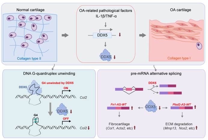 DDX5通过可变剪接和G-四链体解旋双重作用模式阻止透明软骨纤维化和降解的新机制