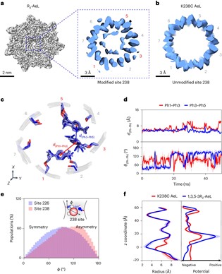 图2 冷冻电镜和全原子分子动力学模拟表征异聚体蛋白质纳米孔道非对称结构域.