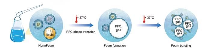 图2 HormFoam连续化制备、体内递送及药物作用过程示意图