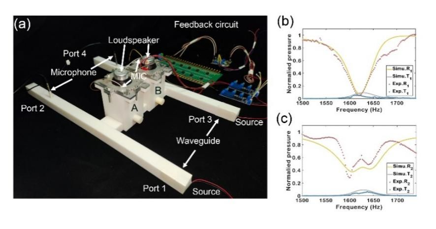 近日,凯发k8官网物理学院声学研究所、近代声学教育部重点实验室、人工微结构科学与技术协同创新中心程建春、杨京和梁彬等人在非厄米声学领域取得重要进展。研究团队基于超材料构建了非厄米声学散射系统,并创新性地引入反馈控制精准调控相干声源,首次在实验上成功观测到了奇异点处的声相干完美吸收。