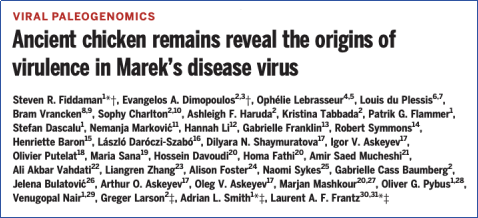 据悉,上世纪50年代以来,家鸡饲养已经成为全球的一项重要产业,而家鸡疾病也成为学术界关注的对象。马立克病病毒是一种具有高度传染性的疱疹病毒,在家鸡体内产生肿瘤,导致家鸡大批死亡。马立克病是1907年匈牙利医生约瑟夫·马立克发现的,并以他的名字命名的。为了防御这种疾病,全球家禽业每年要花费10多亿美元用于接种和其他措施。为了跟踪该病毒的演化轨迹,研究团队从匈牙利、西班牙、俄罗斯和伊朗等欧亚大陆国家的140处考古遗址采集了995份鸡骨样品,检测了他们的基因序列。研究发现,这种病毒在欧亚大陆至少已经流行了1000年。但是古代的病毒致死率不高;致死率的提高发生在过去的一个世纪。其原因一是上世纪50年代以后全球家鸡饲养数量激增,导致了基因变异加速;一方面是因为使用了无效疫苗,没有阻止病毒的传播。这项研究可以让我们改善现代的疫苗,跟踪病毒的变化。