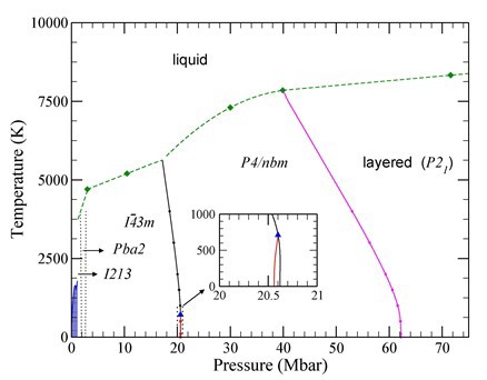 自2004年Eremets等人在实验上合成了立方结构的纯氮聚合物以来,氮元素在高压下的行为和新结构一直是国际高压领域中的研究热点之一。最近,随着动态冲击波压缩等高压技术的进展,实验上能达到的最高压强已进入TPa(相当于一千万个大气压)范围,元素在超高压下的相变越来越受人关注。但到目前为止,人们对于氮元素在超高压下的行为知之甚少,而实验上也需要一定的理论模型来认识和理解各种数据,这一切都使得对超高压下氮元素行为的理论探索变得很有必要和紧迫。