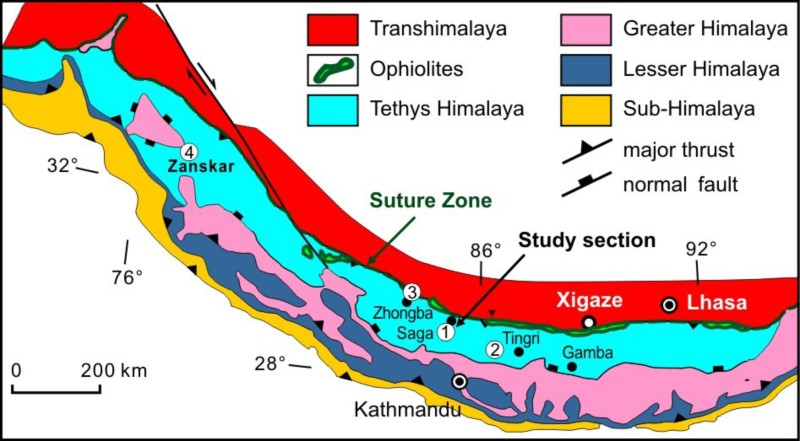 印度与亚洲大陆的初始碰撞时间,是喜马拉雅造山作用的起点。采用不同的初始碰撞时间对重塑喜马拉雅造山过程、理解新生代喜马拉雅和西藏高原隆升、亚洲气候-环境变化、大陆变形等至关重要。大陆初始碰撞的时间是两个大陆岩石圈开始接触的时间,也即大洋岩石圈消失的时间。地质学家通过研究大陆碰撞前后地质记录的变化来反演获得初始碰撞的时间。对于印度与亚洲大陆的初始碰撞时间,前人从古地磁、古生物、构造、岩浆、变质、地层、沉积等多学科开展过大量研究。但迄今对初始碰撞的时间仍争论很大,从70 Ma到30 Ma。凯发k8官网地球科学与工程学院胡修棉教授与意大利、美国科学家合作,最近在国际著名地学刊物《地质学》(Geology)发表文章,将印度-亚洲大陆初始碰撞的时间精确限定在古新世中期(59±1百万年前)。