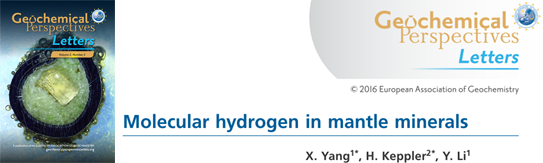 相关成果以封面文章”Molecular hydrogen in mantle minerals”发表于《Geochemical Perspective Letters》(GPL),全文链接为http://www.geochemicalperspectivesletters.org/article1616。该项工作是杨晓志教授课题组近三年来在地球氧逸度和深部地球水循环方向系列工作的重要成果,相关实验主要使用杨晓志教授在我校搭建的高温高压设备和分析测定装置以及合作者单位的部分仪器。课题组前几年相关成果已连续有多篇论文发表在Earth and Planetary Science Letters (EPSL)和Geochimica et Cosmochimica Acta (GCA)等地学顶尖期刊。