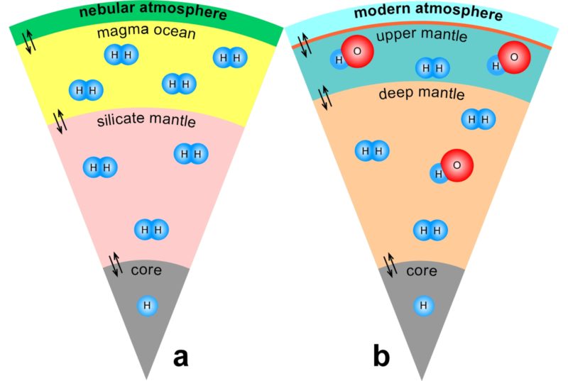水是地球区别于太阳系其它行星的重要标志,也是人类赖以生存的基础。地球上水的起源以及深部地球中水的赋存形式和含量,是地球科学近十几年来的前沿领域和热门方向。地球内部主要是由各种矿物构成的,学术界当前普遍接受的观点是地球深部的水主要以OH等点缺陷形式赋存在矿物的晶体结构中(非自由态水或结构水),并在地球长达40多亿年的漫长演化过程中与地表大气圈-水圈-生物圈等层圈间的水(自由态水或分子水)发生不断的交换和循环。在这些形式的水中,氢都以+1价态存在,意味着相对氧化的环境。然而,现今地球的深部(乃至月球和火星等)以及地球(乃至太阳系其它星体)诞生的早期是高度还原的,且太阳系初期的基元物质是H2和He(即太阳系成因的星云学说)。水如何从最初的氢过渡到当前地球上的存在形态,在科学认识上缺失了极为重要的一环。