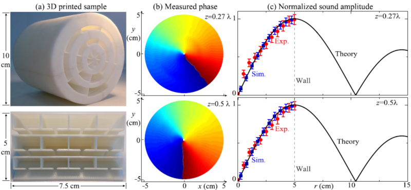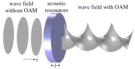 目前,声学轨道角动量的引入必须依赖具有螺旋分布初始相位的主动声源技术,或使用传播路径在角度方向呈螺旋形状的特殊结构。然而,第一种原理需要大量独立设计的换能器和繁杂的电路控制,带来的高成本和复杂性限制了其在现实中的应用。根据第二种原理所设计的结构则具有庞大的体积和螺旋形的几何结构,且难以达到平整的表面形状。如何利用小尺度、平面状的简单结构来高效产生声学轨道角动量,是一个亟待解决的关键科学问题。