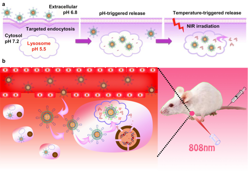 图2 光热载药纳米探针的靶向传输与多刺激响应释放