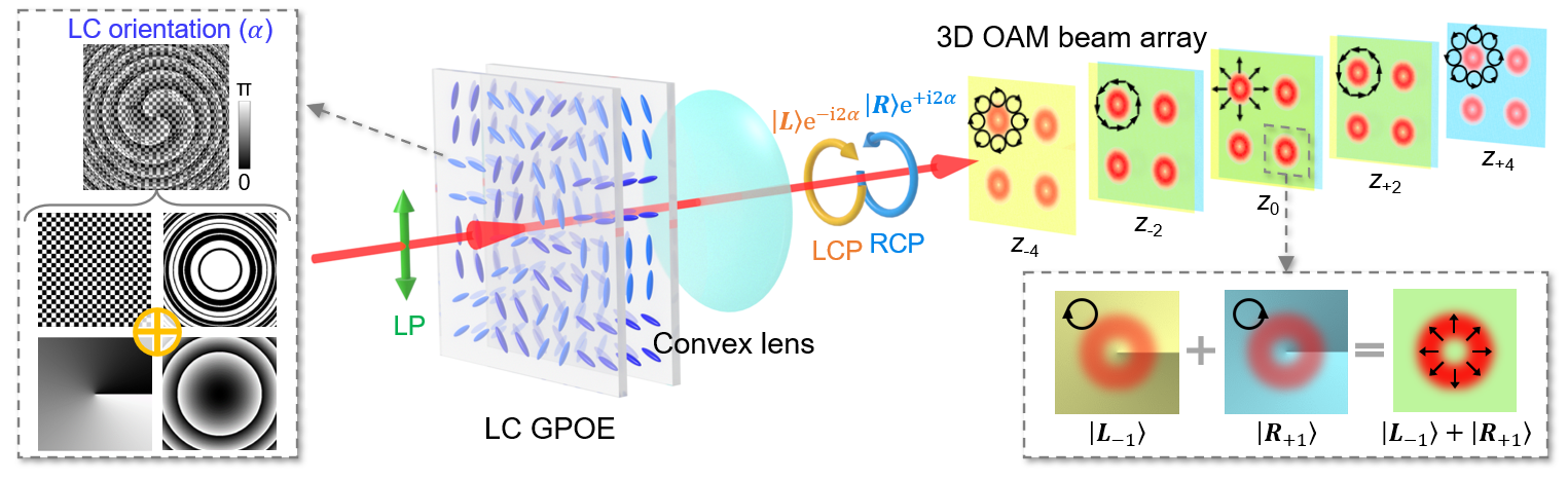 图1. 基于液晶几何相位的OAM光束三维阵列操控示意图