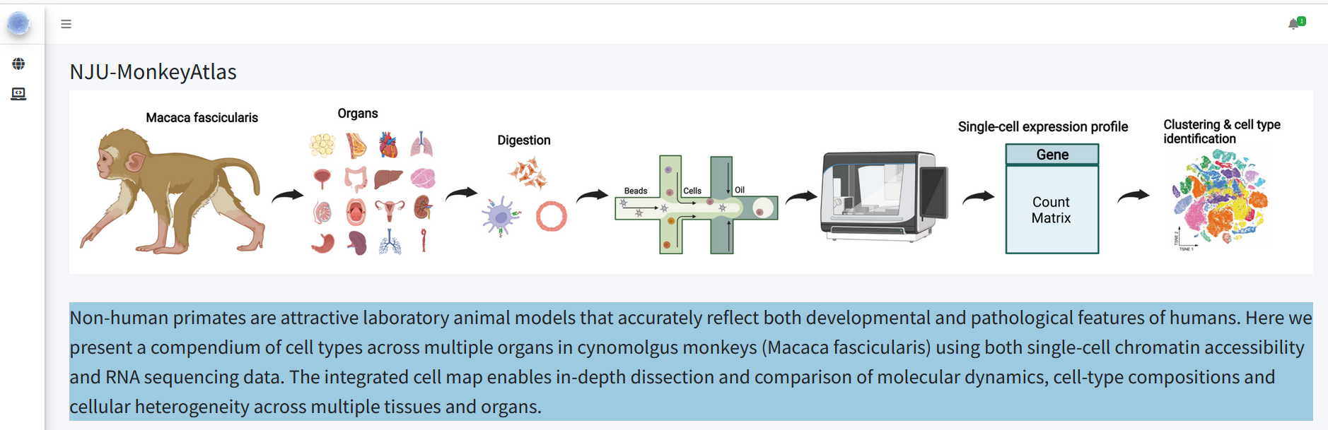 非人灵长类动物(non-human primate)在遗传、器官结构、生理功能、病理反应和生化代谢等诸多方面表现出与人类相似的特征,是生物医学研究和药物研发的理想动物模型,具有重要的研究价值。其中,食蟹猴作为生物医学研究中常用的一种非人灵长类动物模型,广泛用于包括当下新冠疫情在内的临床前药理、毒理研究中。因此,系统评估食蟹猴等非人灵长类动物模型与人类的细胞组成差异、器官异质性和基因表达时空特异性,将为深入理解与人类生命活动相关的生理功能、药物反应、疾病防治等提供重要理论依据。